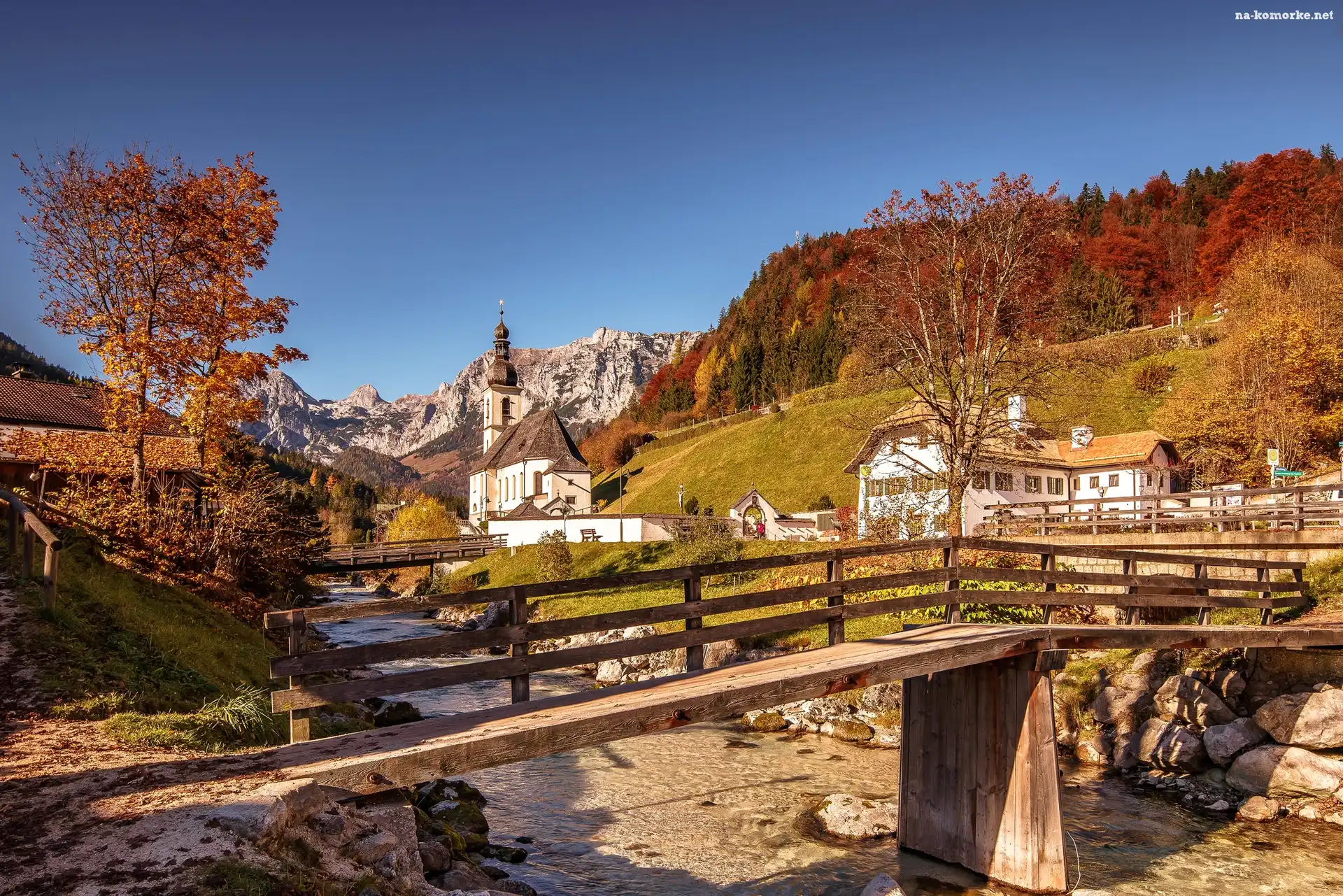 Góry, Niemcy, Bawaria, Kościół, Rzeka na Komórkę