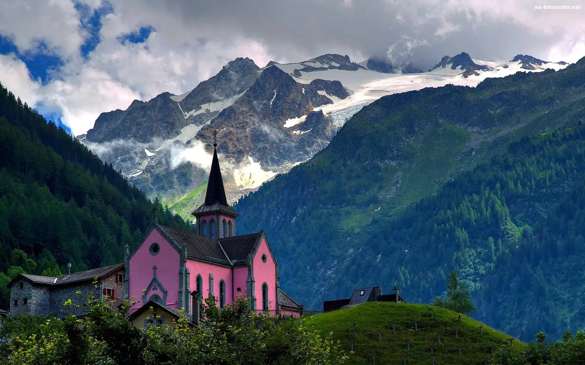 Kościół, Góry, Szwajcaria na Komórkę