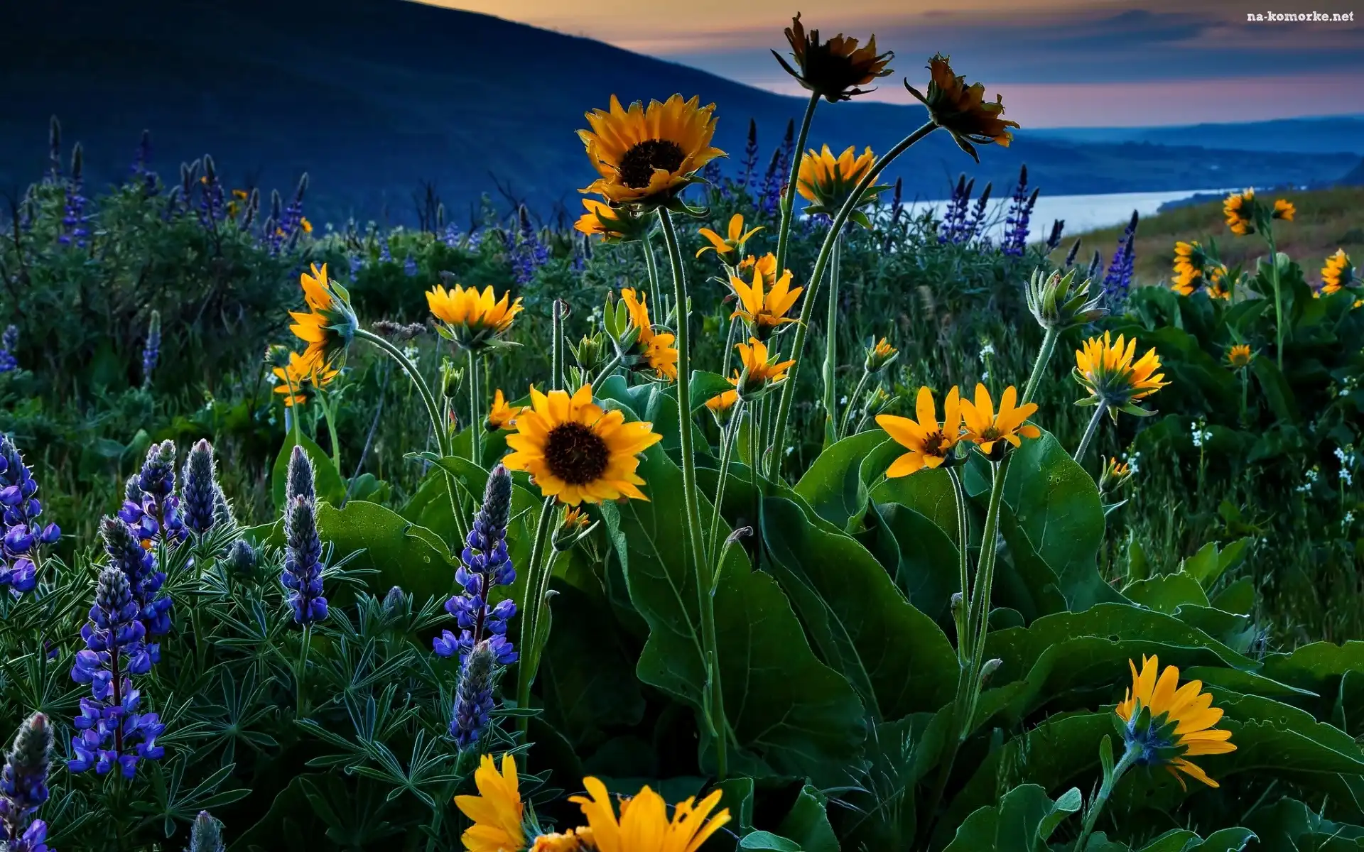 Góry, Łubin, Kwiaty, Słoneczniki na Komórkę