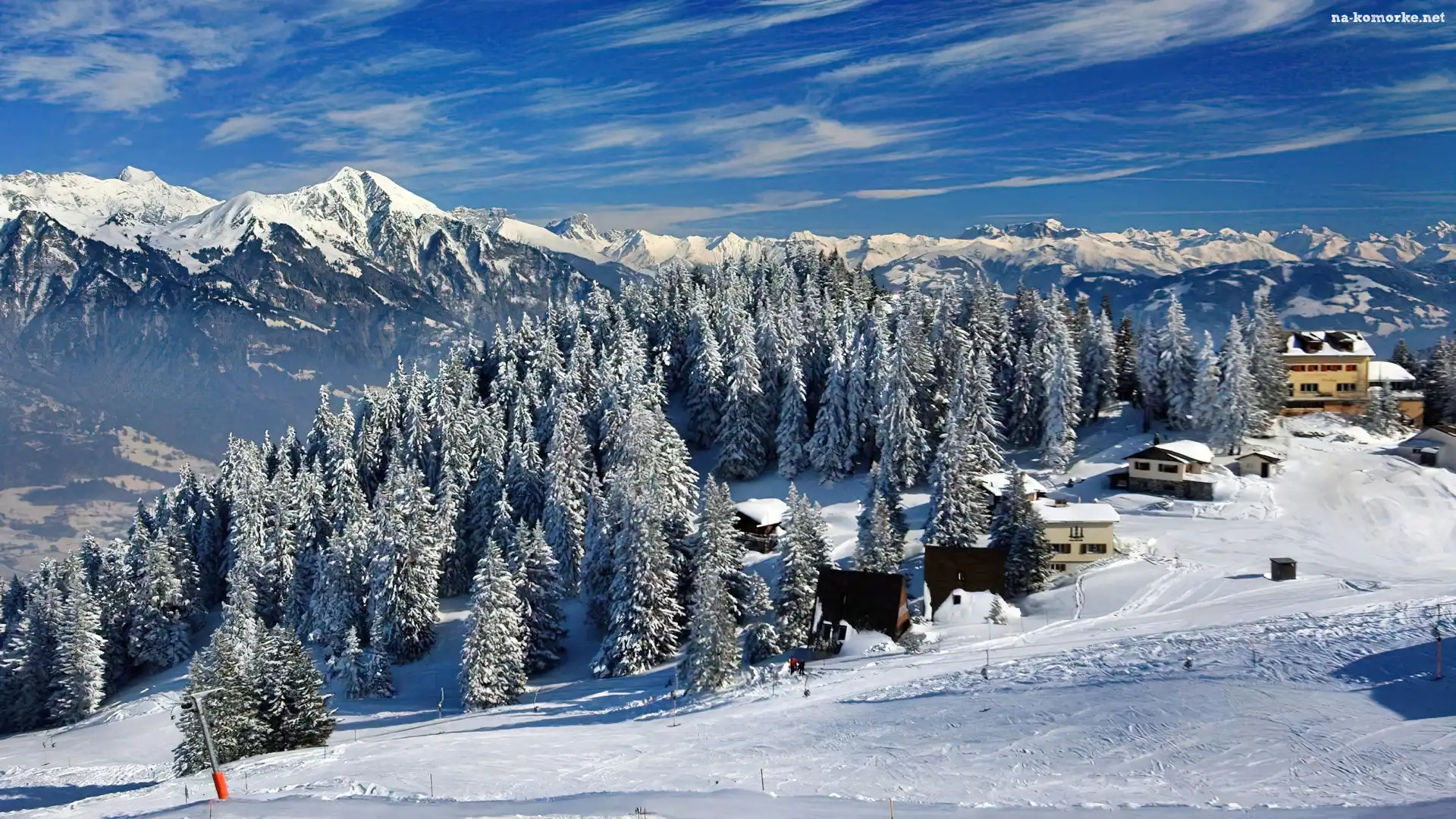 Góry, Szwajcaria, Las, Domy na Komórkę