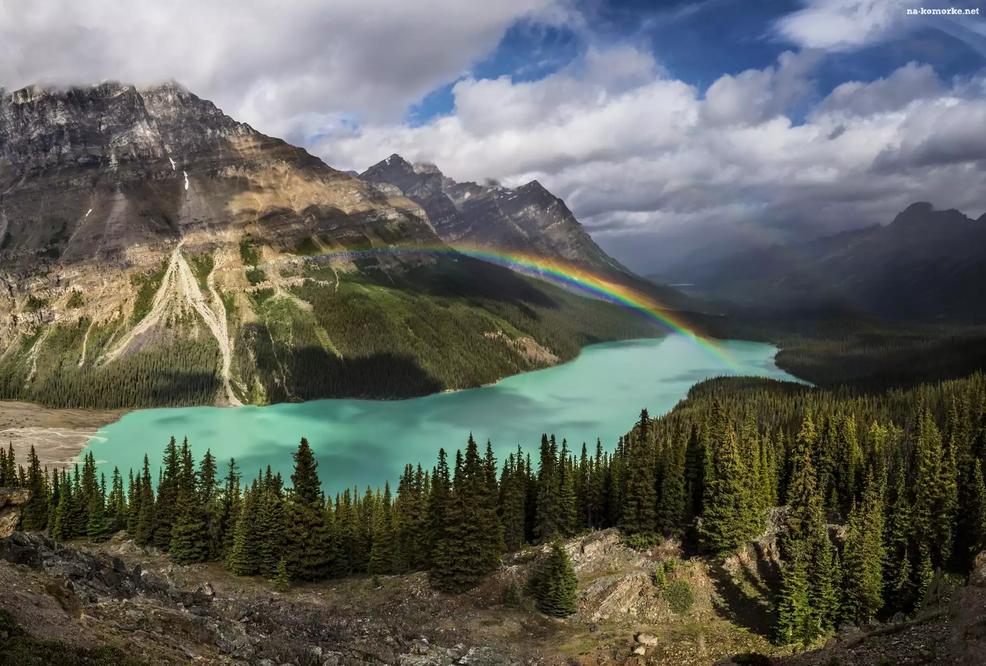 Prowincja Alberta, Jezioro Peyto Lake, Góry, Tęcza, Park Narodowy Banff, Kanada na Komórkę