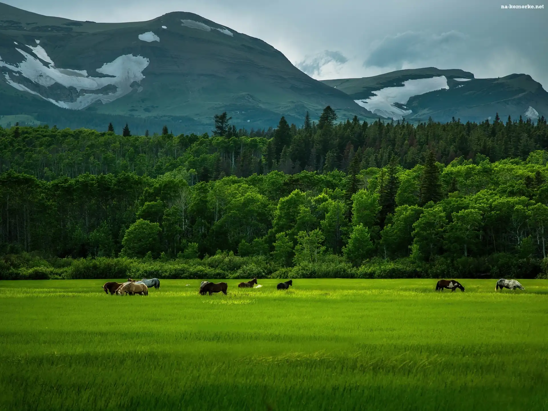 Góry, Zboże, Las, Konie na Komórkę
