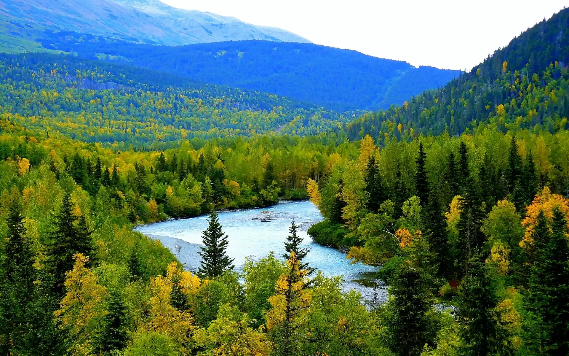 Góry, Alaska, Lasy, Rzeka na Komórkę