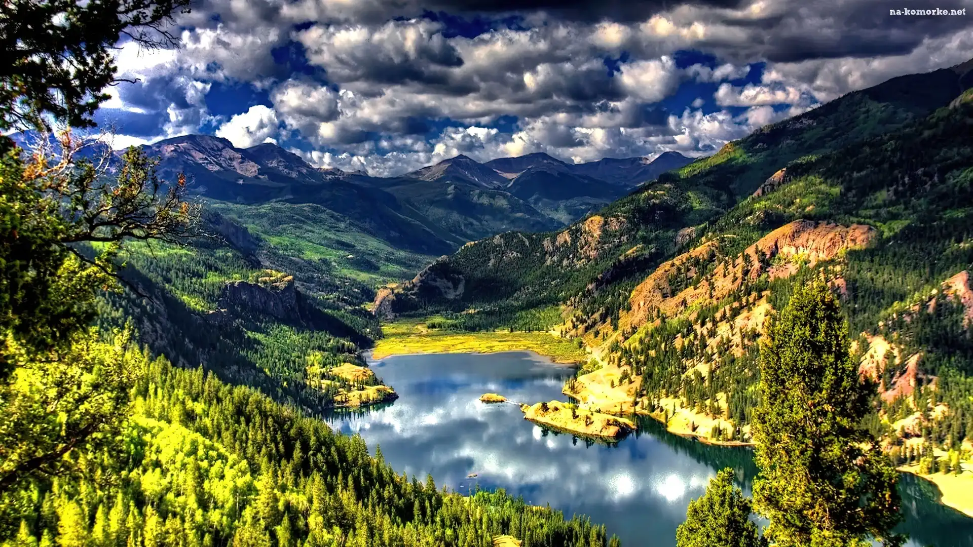Góry, Chmury, Lasy, Jezioro na Komórkę