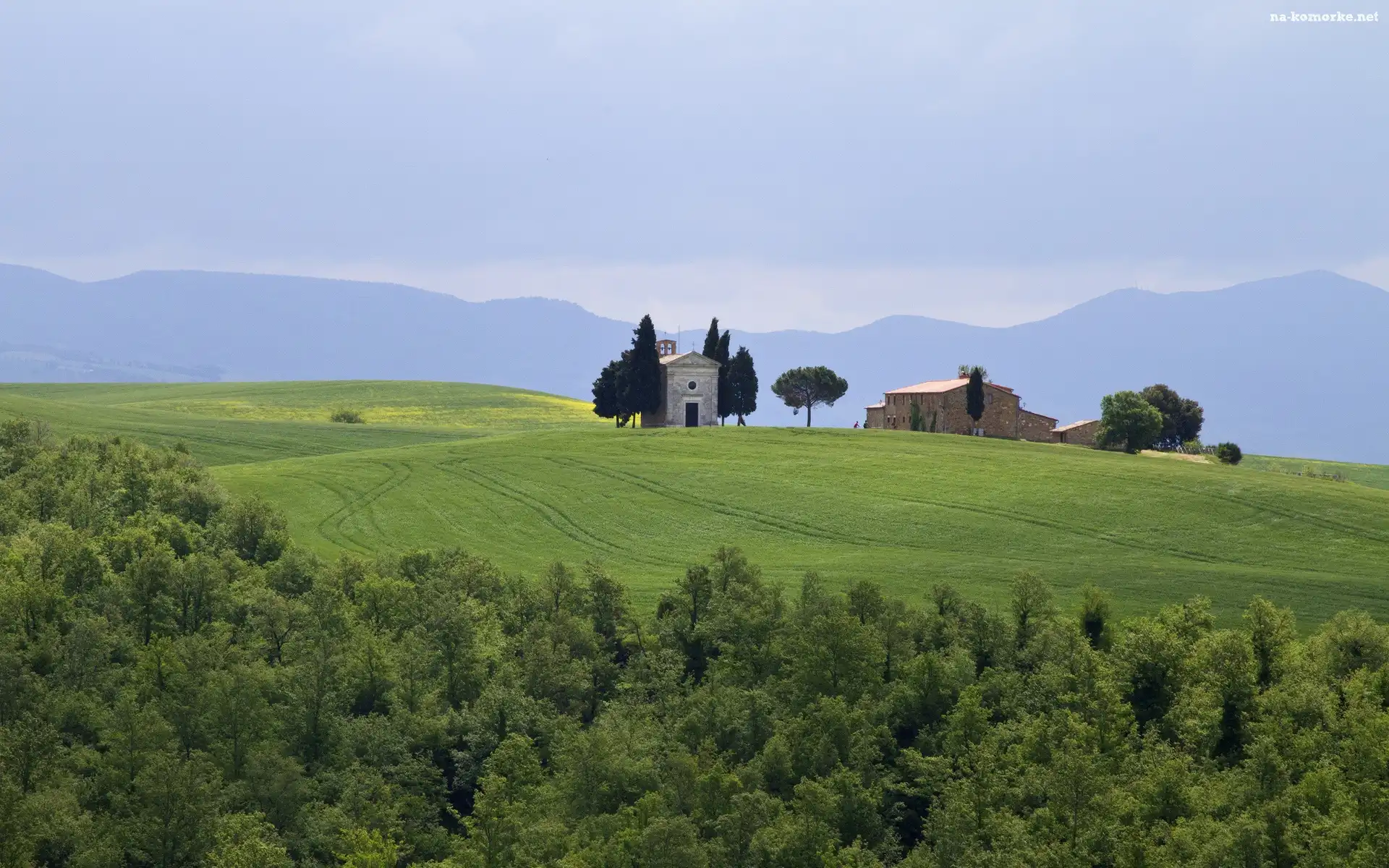 Góry, Łąki, Domy, Włochy, Lasy, Toskania na Komórkę