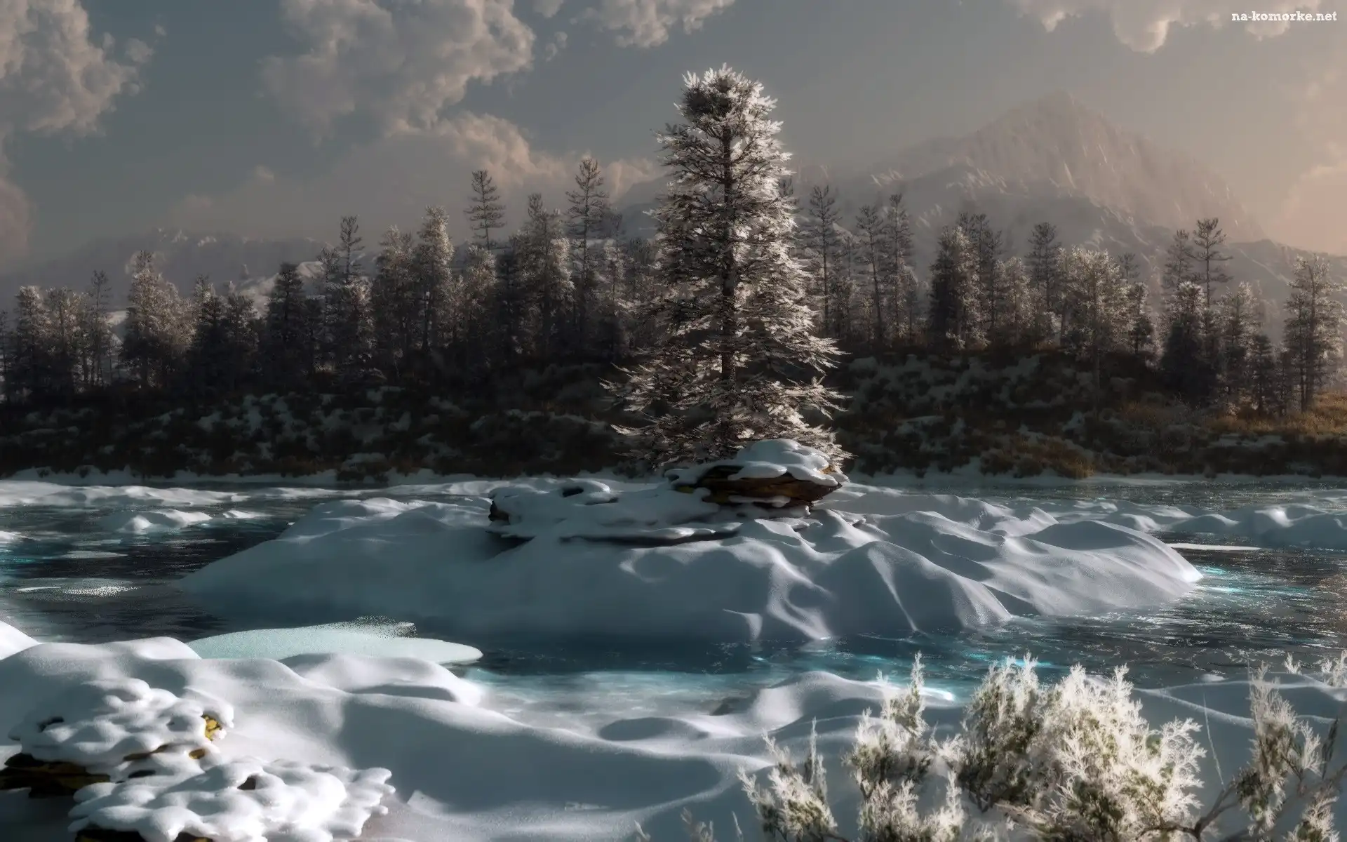 Góry, Zima, Lasy, Rzeka na Komórkę