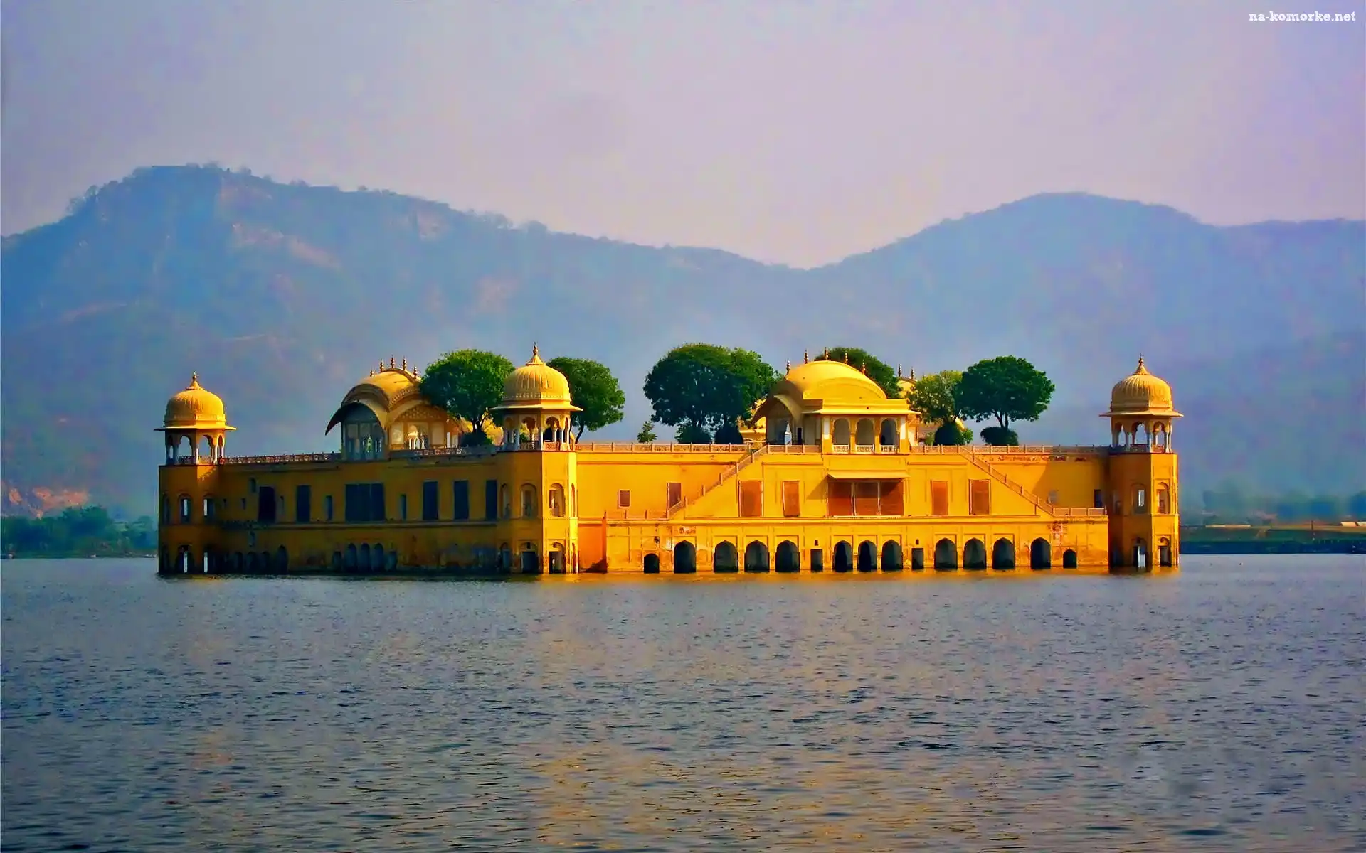 Pałac, Góry, Wschód Słońca, Jaipur, Jezioro, Jal Mahal na Komórkę