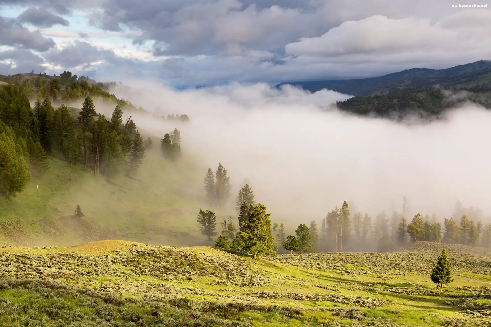 Góry, Chmury, Mgła, Drzewa na Komórkę
