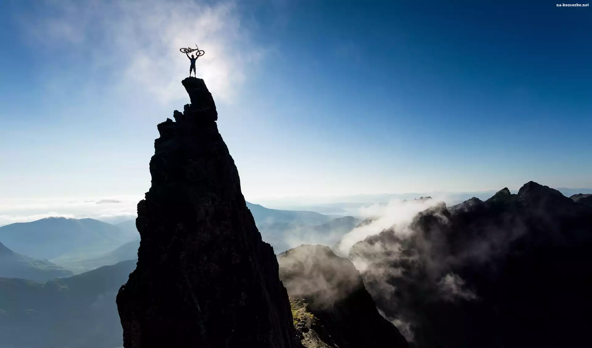 Góry, Rower, Mgła, Mężczyzna na Komórkę