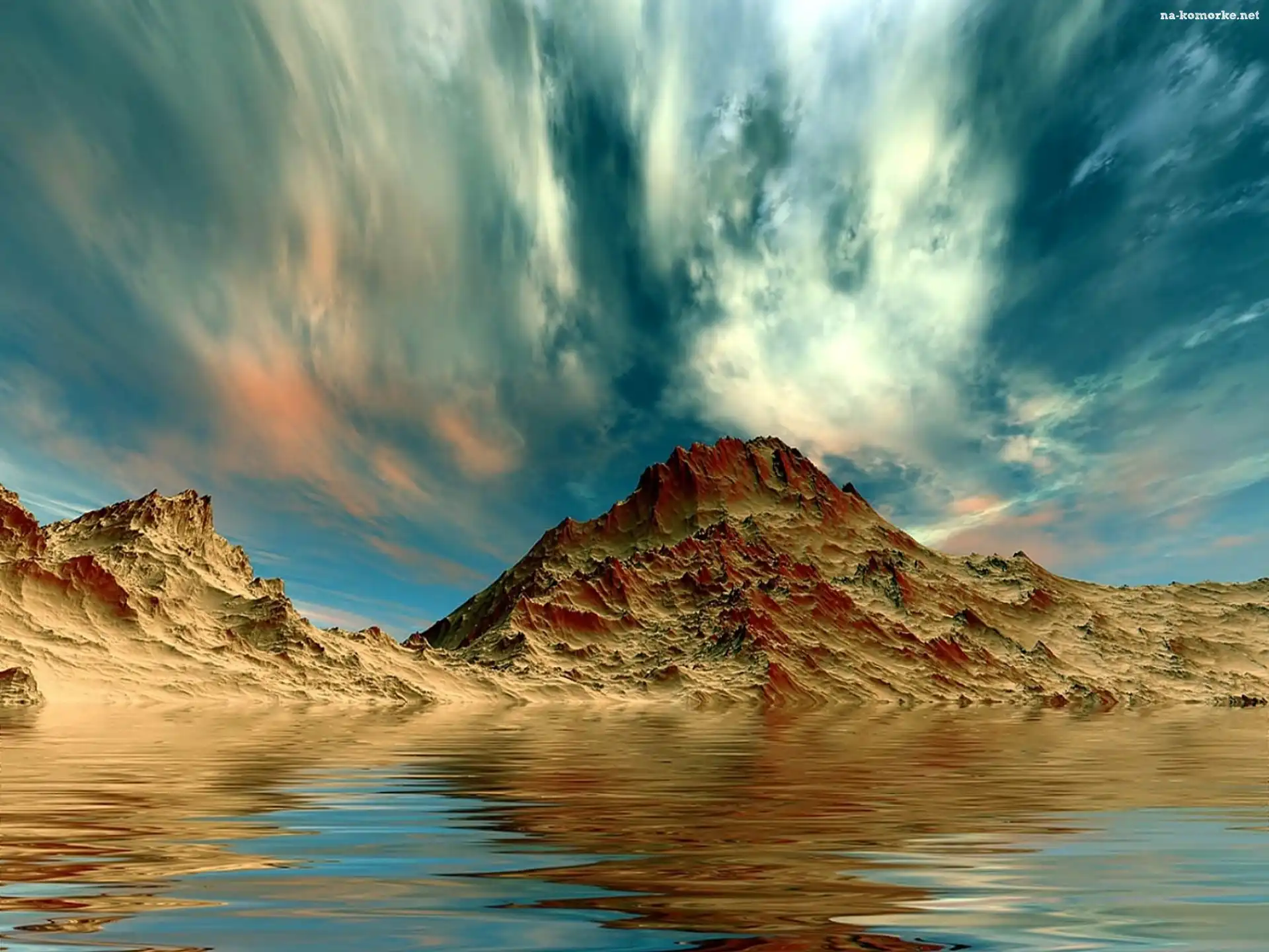 Góry, Odbicie, Morze, Obłoki na Komórkę