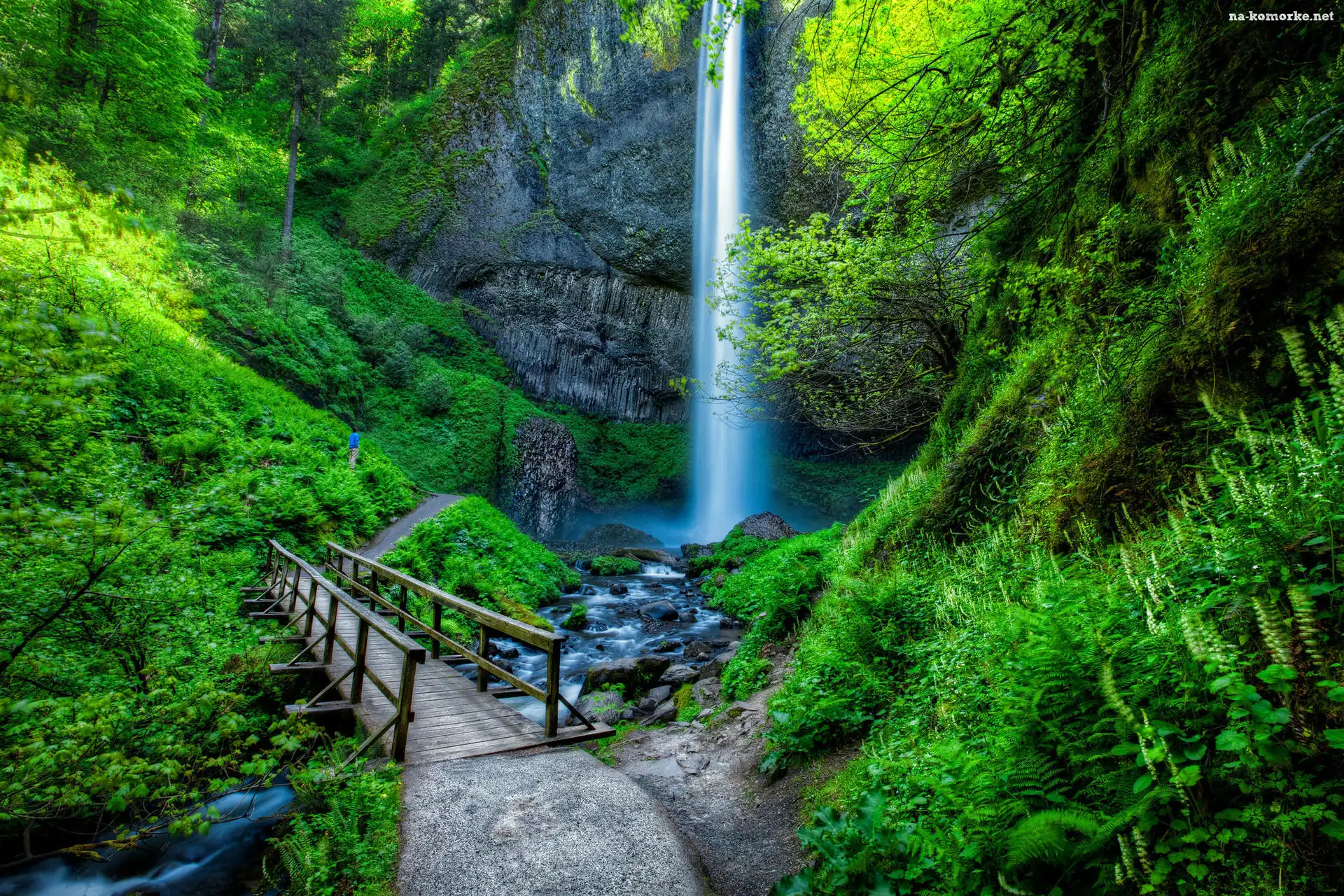 Góry, Drewniany, Rzeka Kolumbia, Wodospad, Stany Zjednoczone, Skały, Hrabstwo Multnomah, Latourell Falss, Oregon, Most, Zieleń na Komórkę |