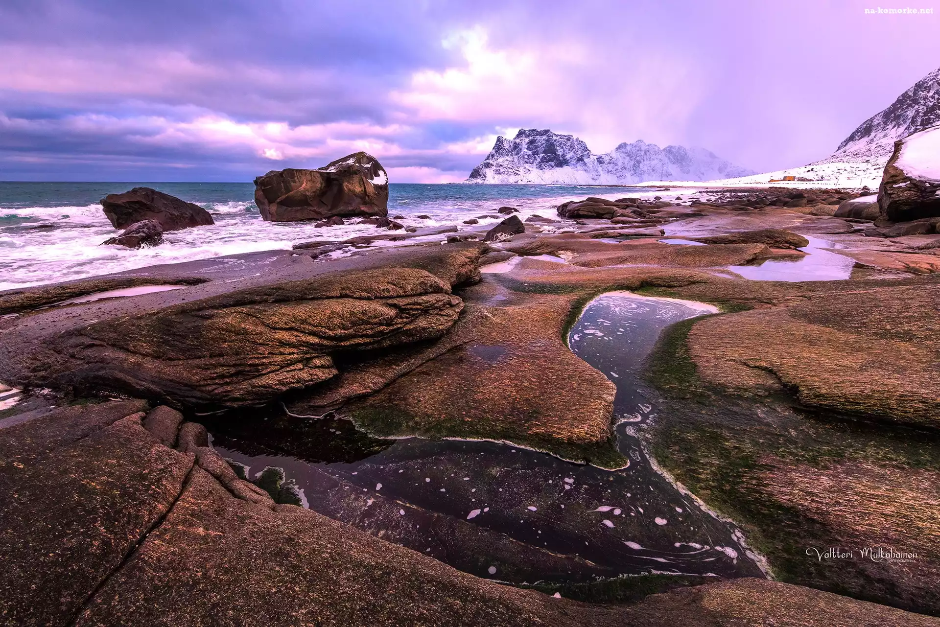 Skały, Kamienie, Norwegia, Śnieg, Lofoty, Morze Norweskie, Góry na Komórkę