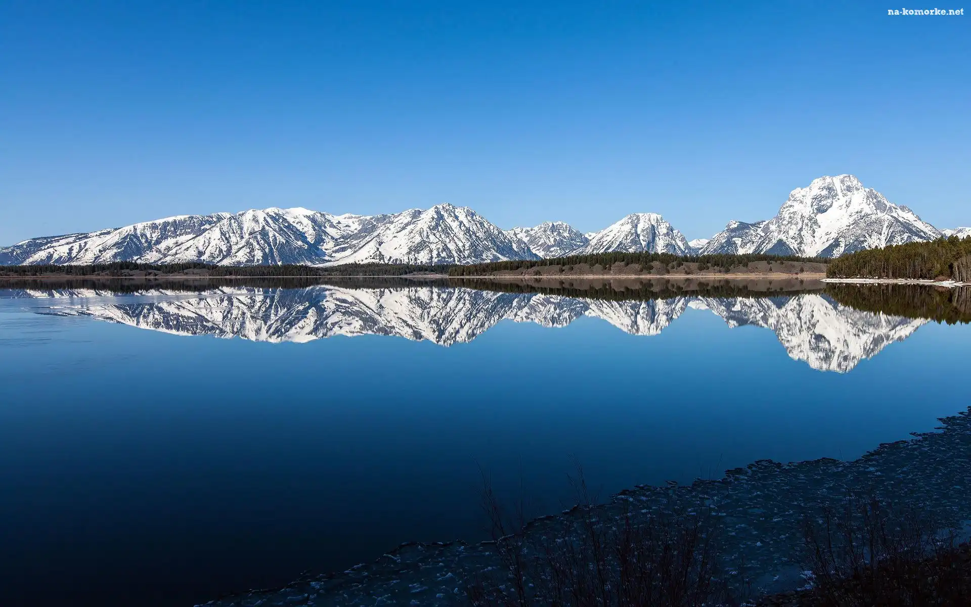Góry, Niebo, Odbicie, Jezioro na Komórkę