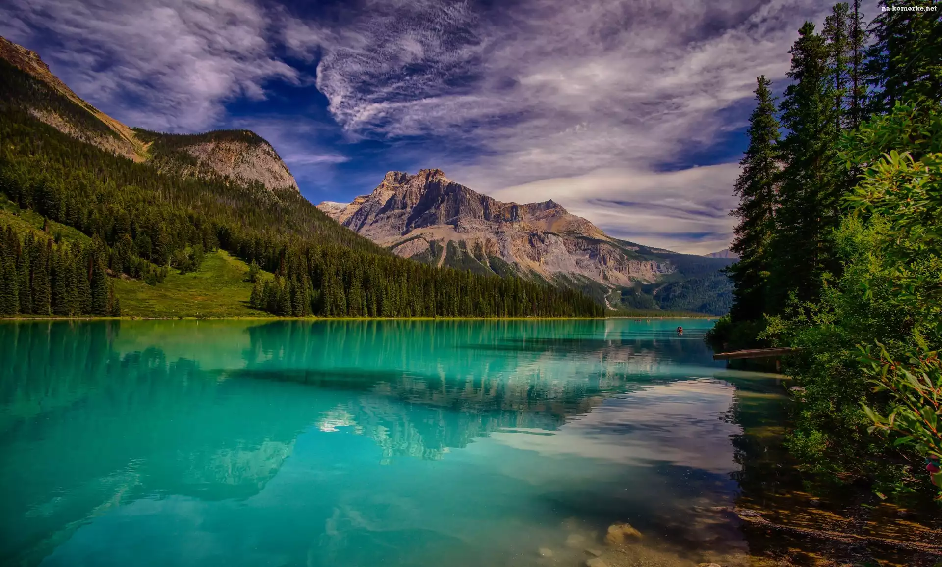 Lasy, Kanada, Park Narodowy Yoho, Jezioro Emerald Lake, Góry na Komórkę