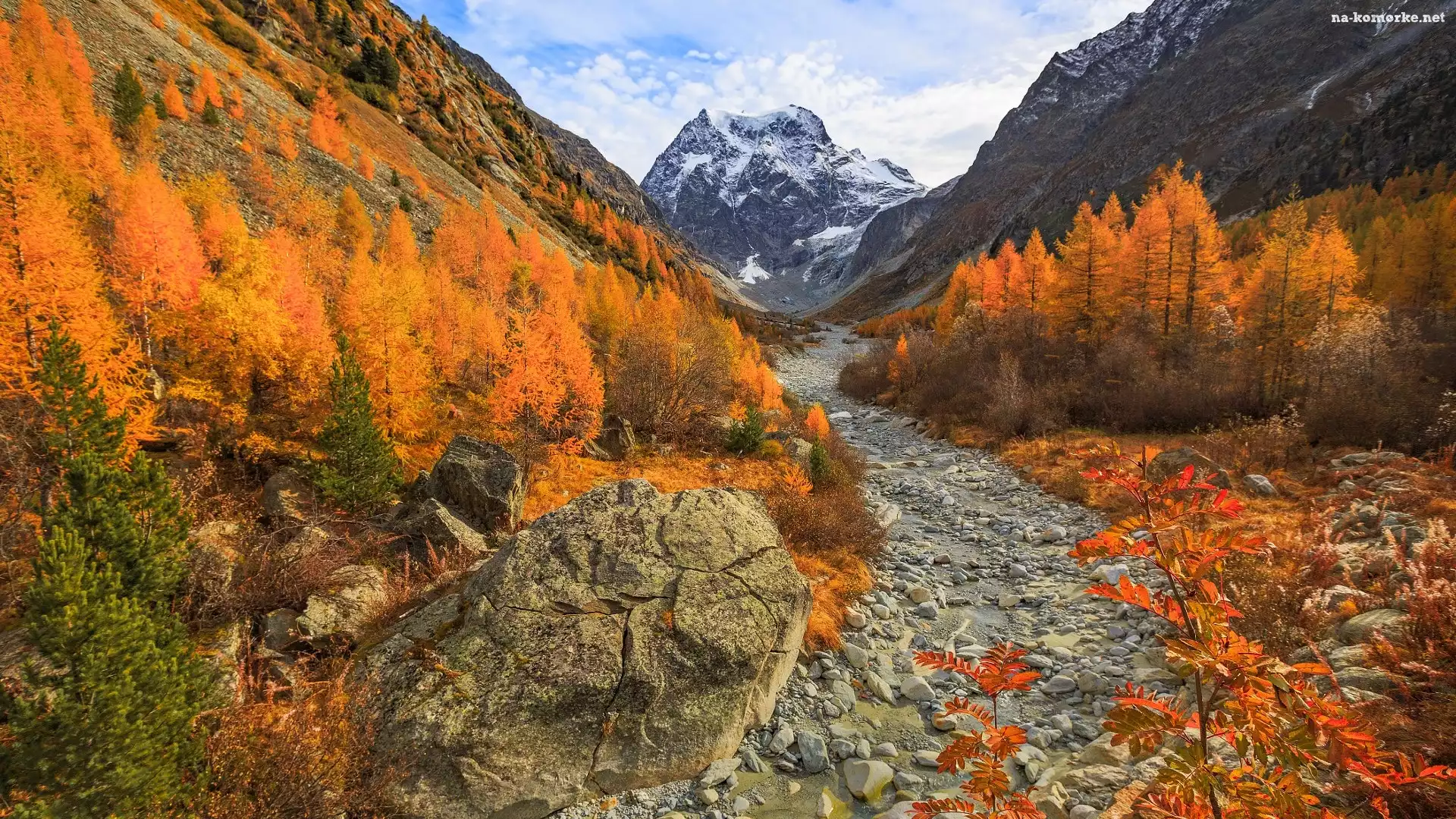 Kamienie, Żółte, Szwajcaria, Mont Collon, Góra, Góry Pennińskie, Jesień, Drzewa, Arolla na Komórkę