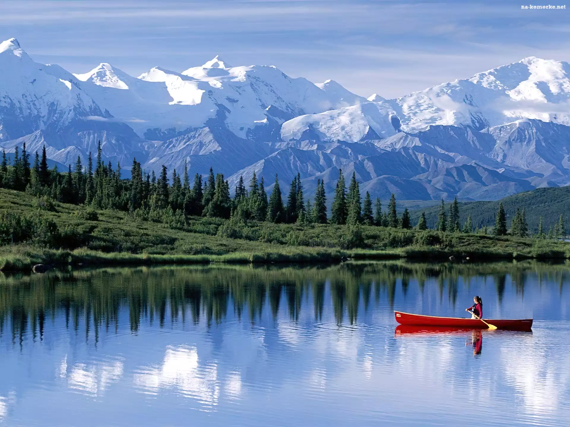 Góry, Ameryka, Alaska, Czółno, Północna, Jezioro na Komórkę