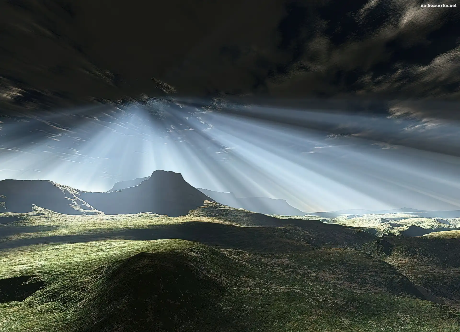 Góry, Chmury, Promienie Słońca na Komórkę