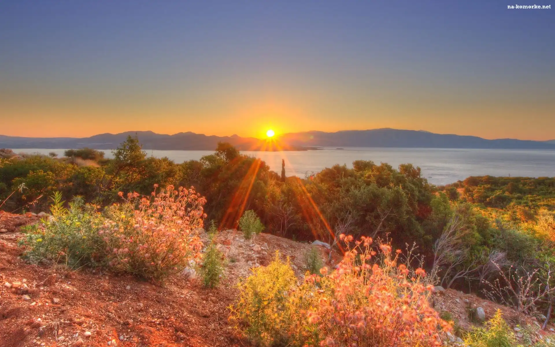 Góry, Roślinność, Jezioro, Promienie Słońca na Komórkę