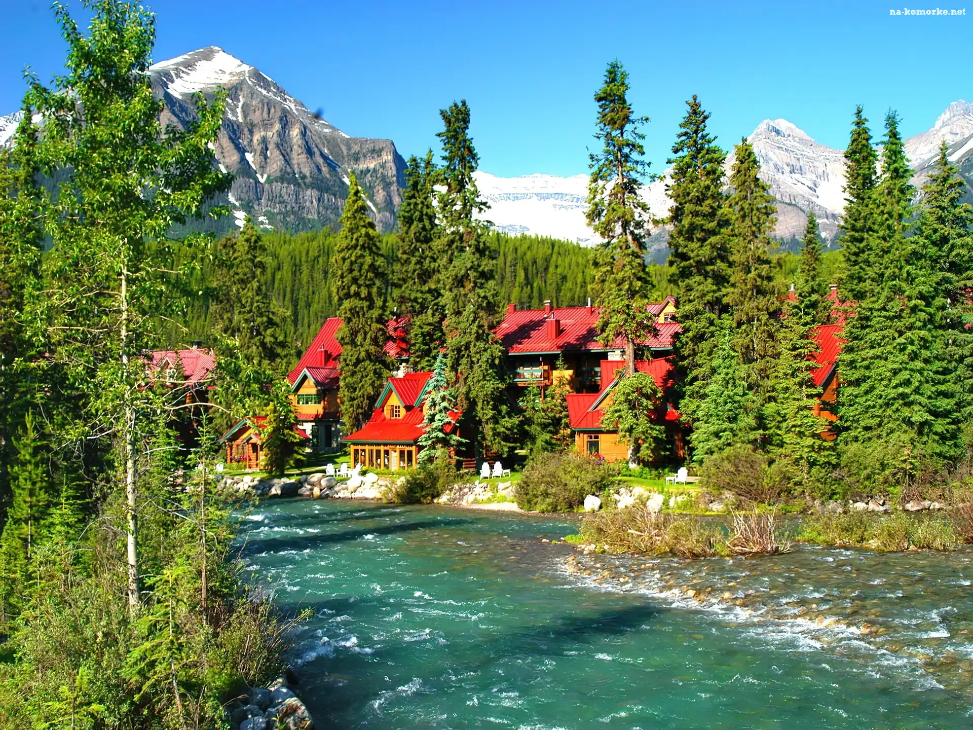 Góry, Drzewa, Rzeczka, Domki na Komórkę