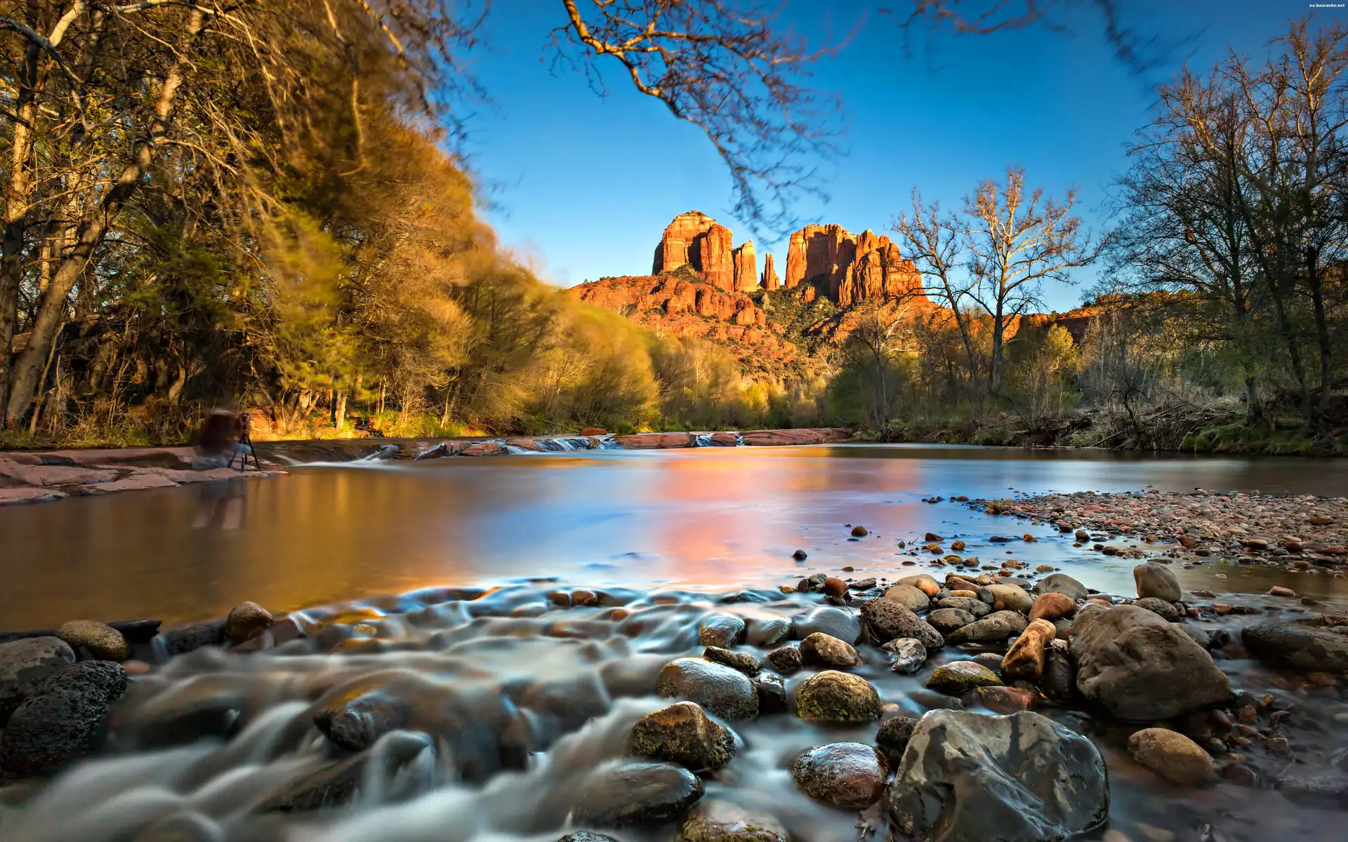 Góry, Drzewa, Rzeka, Kamienie na Komórkę
