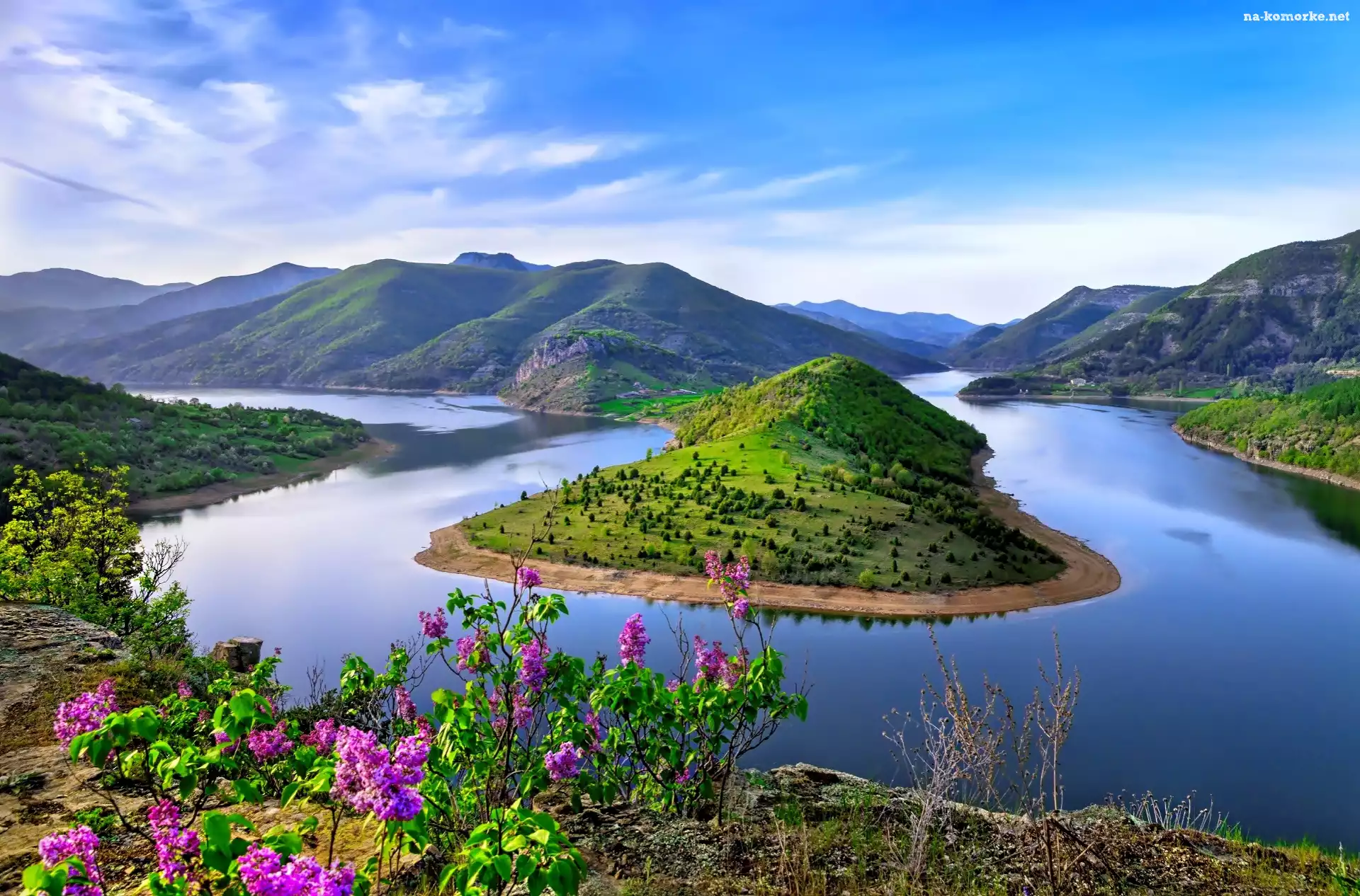 Góry, Kwiaty, Rzeka, Meander na Komórkę