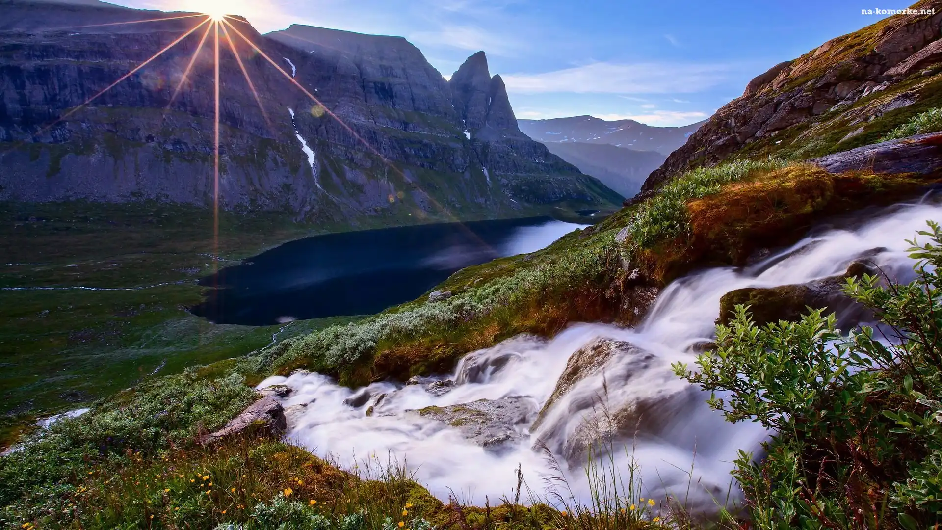 Góry, Promienie słońca, Rzeka, Jezioro na Komórkę