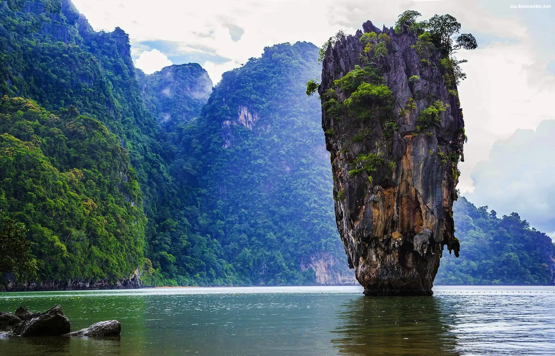 Góry, Tajlandia, Skała, Drzewa na Komórkę