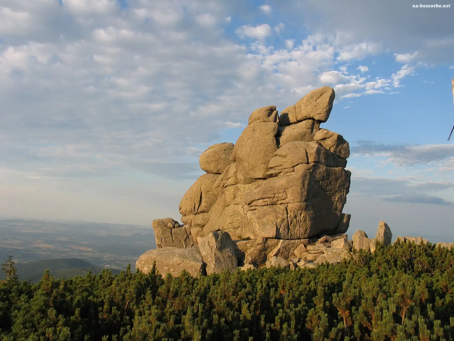 Góry, Chmury, Skały, Las na Komórkę
