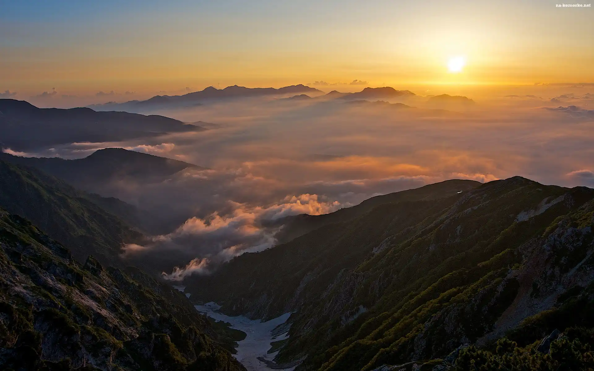 Góry, Zachód Słońca, Chmury na Komórkę