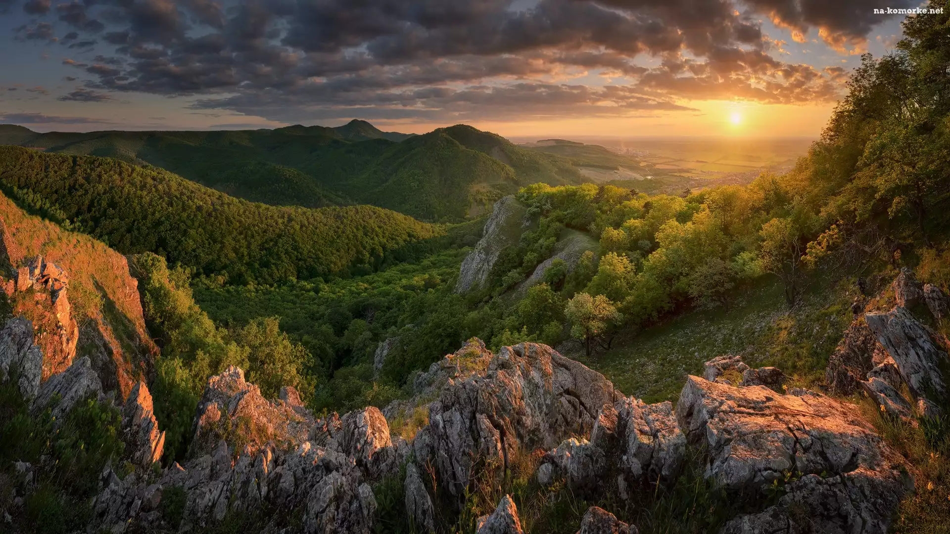 Wschód słońca, Słowacja, Skały, Lasy, Małe Karpaty, Góry na Komórkę