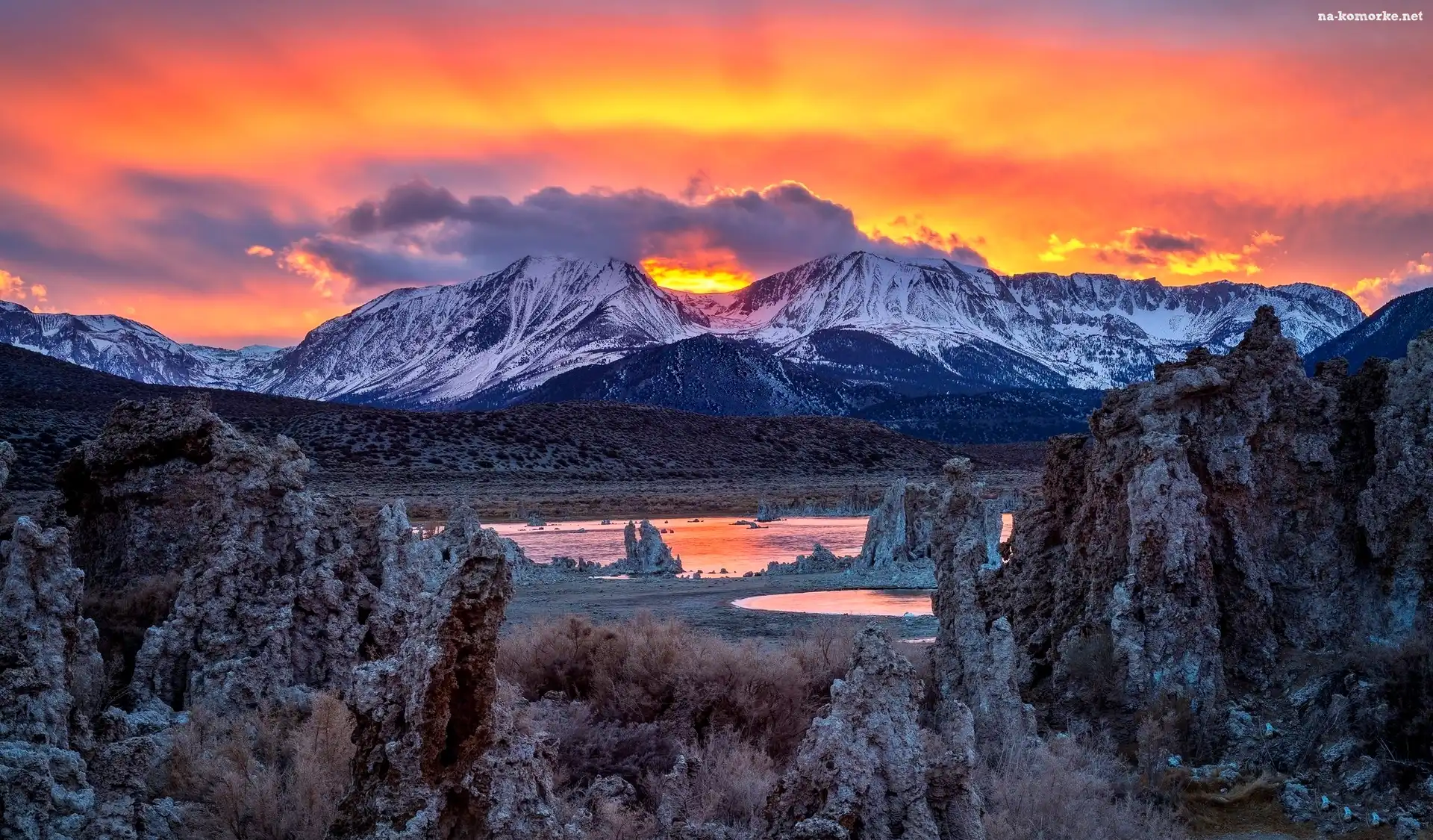 Zachód Słońca, Stany Zjednoczone, Stan Kalifornia, Jezioro Mono Lake, Góry na Komórkę