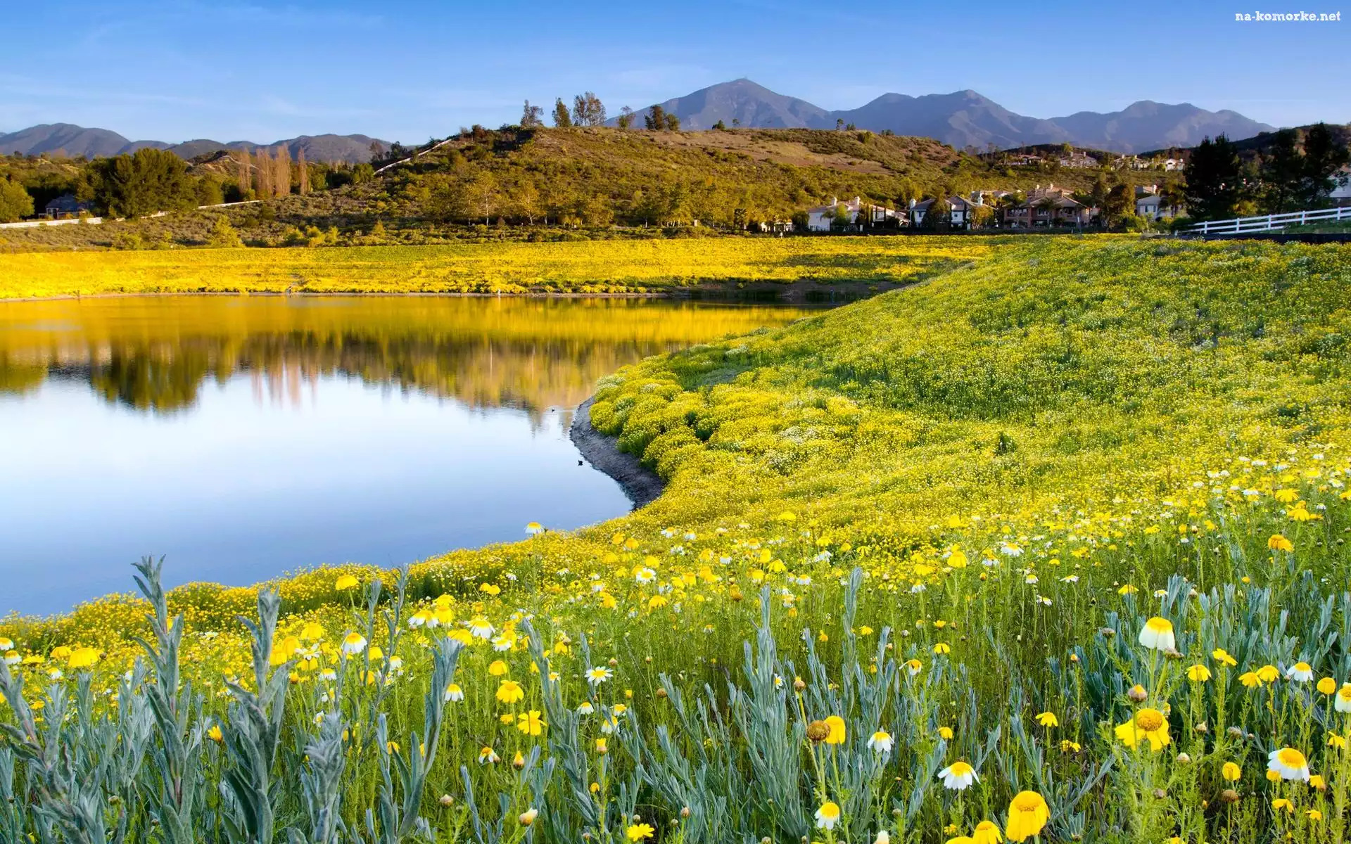 Góry, Kwiaty, Staw, Łąka na Komórkę