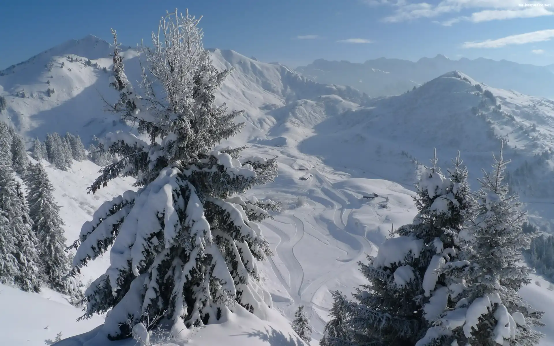 Góry, Zima, Szczyty, Drzewa na Komórkę