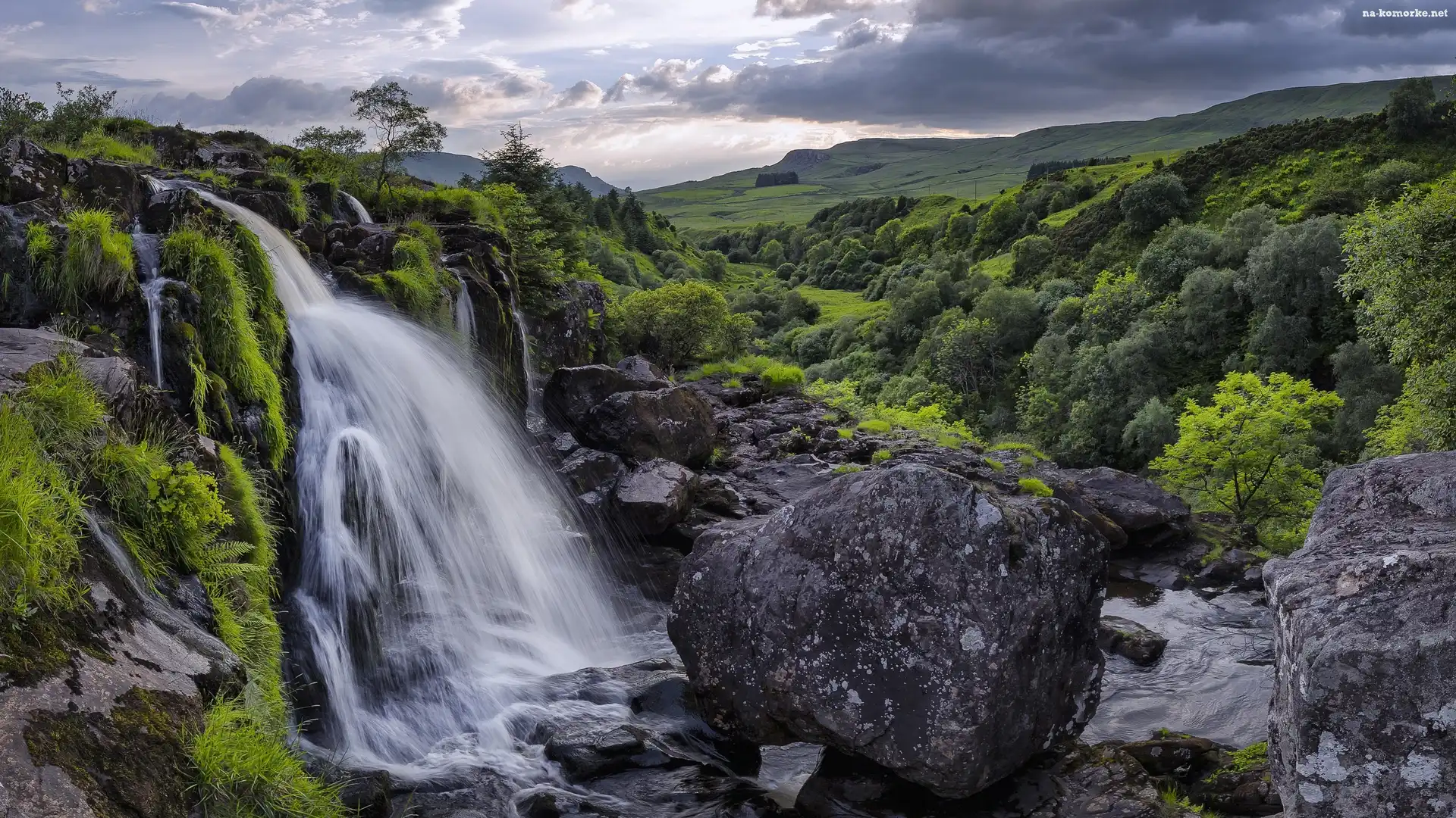 Szkocja, Kamienie, Roślinność, Hrabstwo Stirlingshire, Góry, Rzeka Endrick, Wodospad Loup of Fintry na Komórkę |