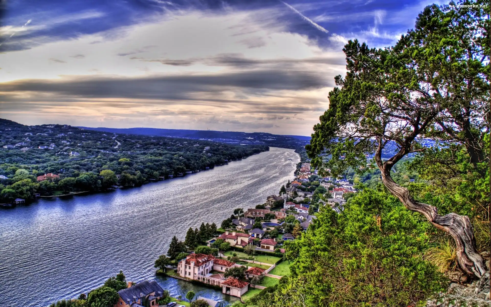 Góry, Rzeka, Miasto, Widok, Z na Komórkę
