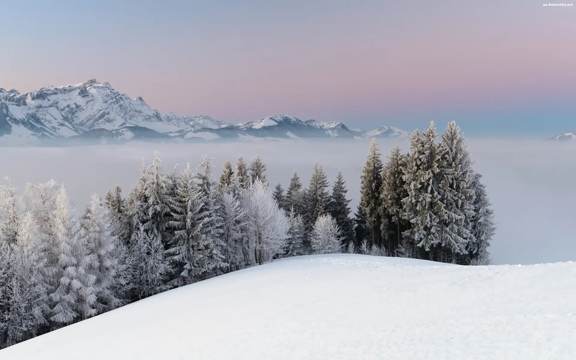 Góry, Szwajcaria, Zima, Lasy, Drzewa Calsberg, Znak, Firmowy, Góry, Zima, Zielone, Parasolki Młyn, Zima, Śnieg Stroik, Jagody, Świerk Ośnieżone, Gałęzie, Świerku Zima, Las, Świerki Góry, Zima, Zakopane Świerk, Piękne, Góry, Jezioro, Chmury Świerki, Pokryte, Śniegiem Kraina, Lodu Alpy, Chmury, Góry Niebo, Drzewa, Zima, Kolorowe Jezioro, Świerki Ptaszek, Gałązka, Wróbelek, Świerkowa