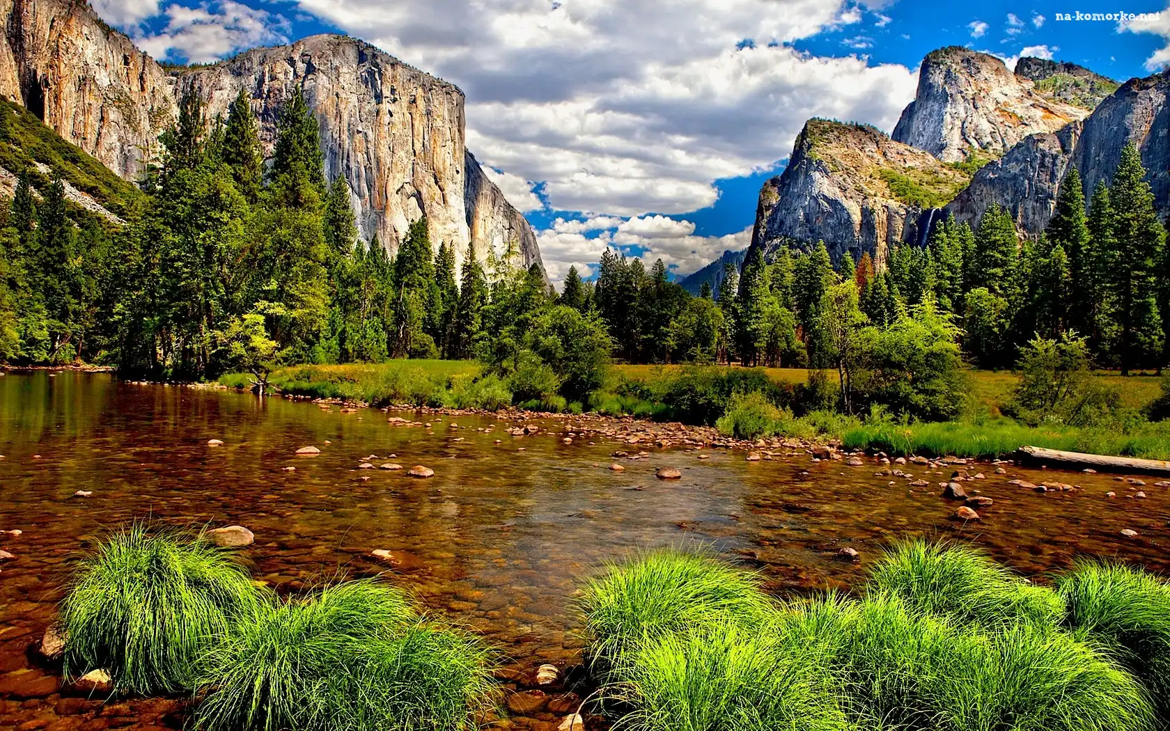 Góry, Trawy, Woda, Drzewa na Komórkę