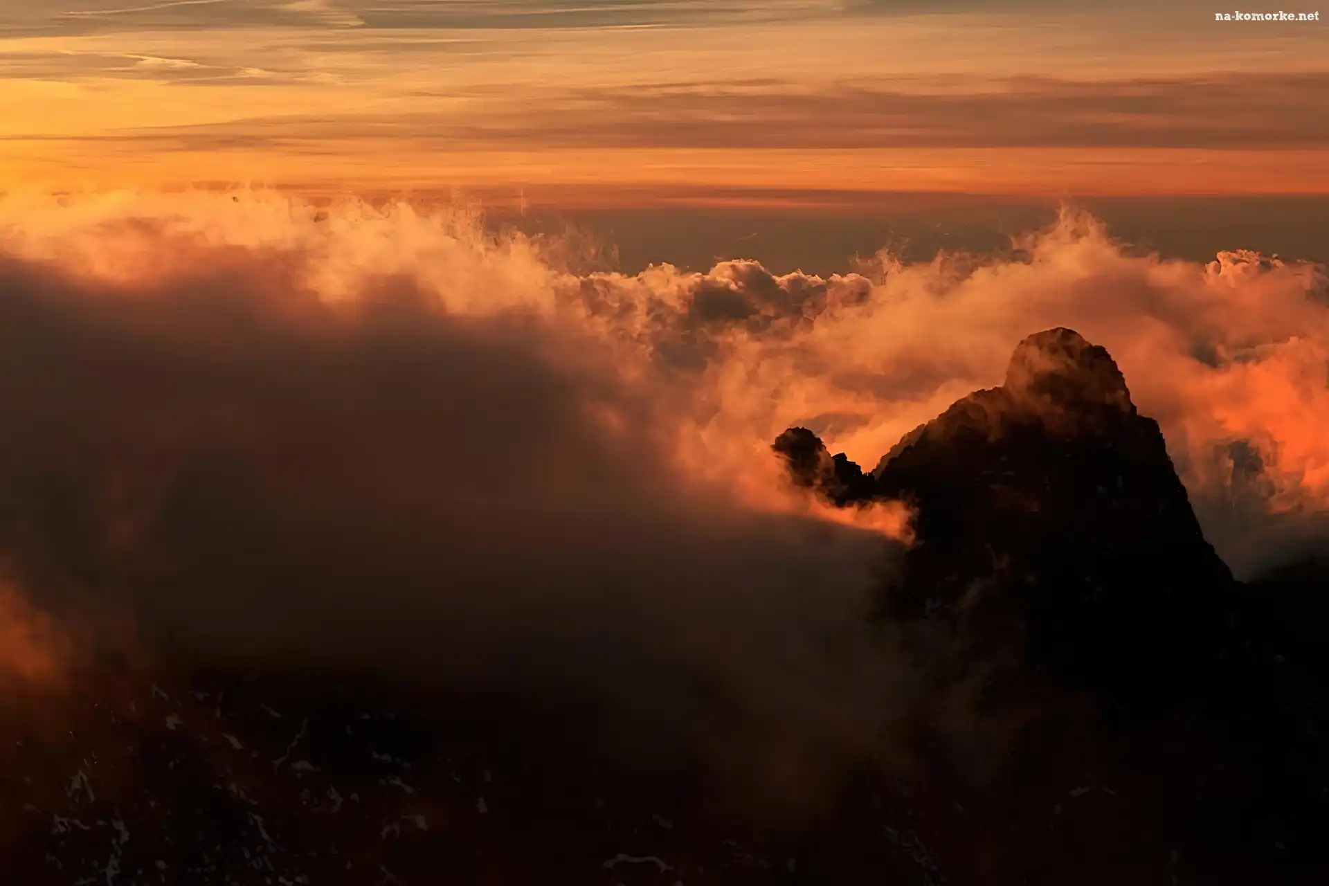 Góry, Chmury, Zachód, Słońca na Komórkę