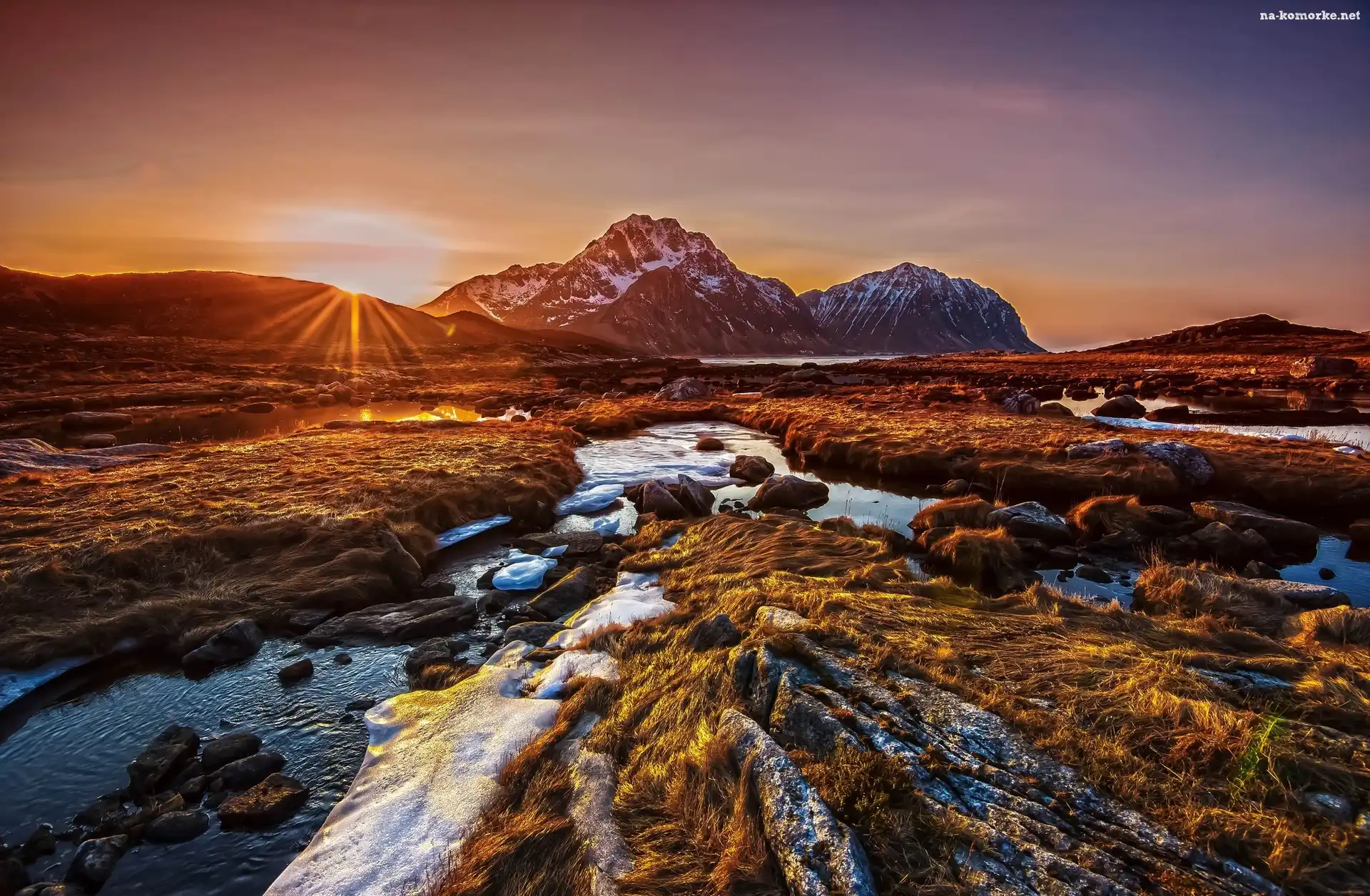 Góry, Rzeka, Zachód Słońca na Komórkę