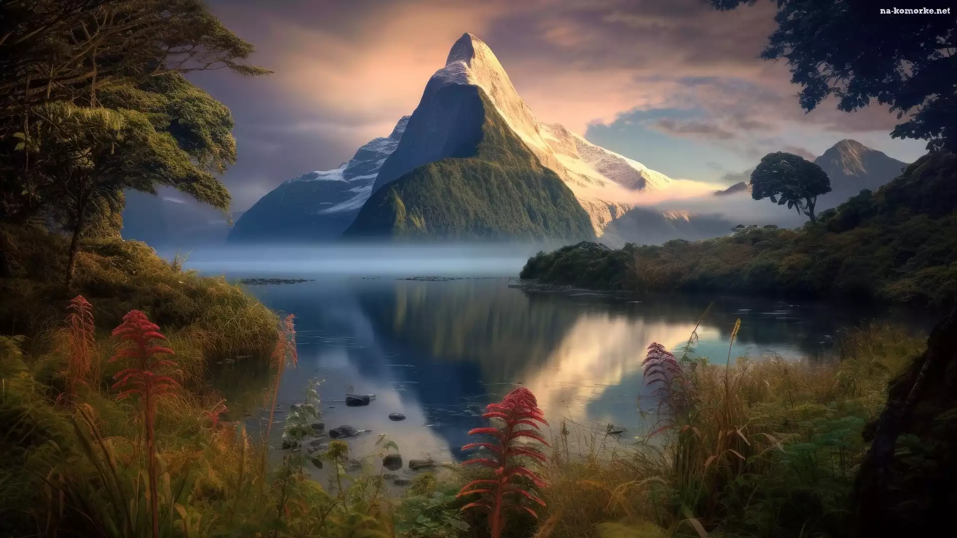 Odbicie, Góra, Nowa Zelandia, Alpy Południowe, Góry, Fiord Milford, Zatoka Milforda, Mitre Peak, Park Narodowy Fiordland na Komórkę |