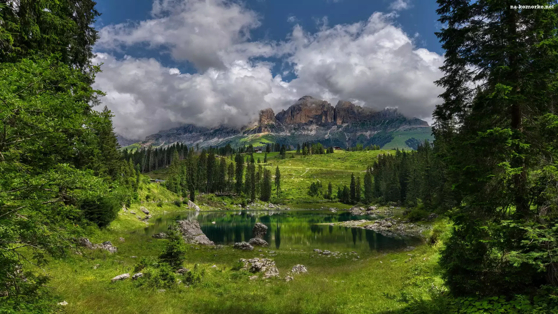 Zielone, Drzewa, Jezioro, Góry na Komórkę