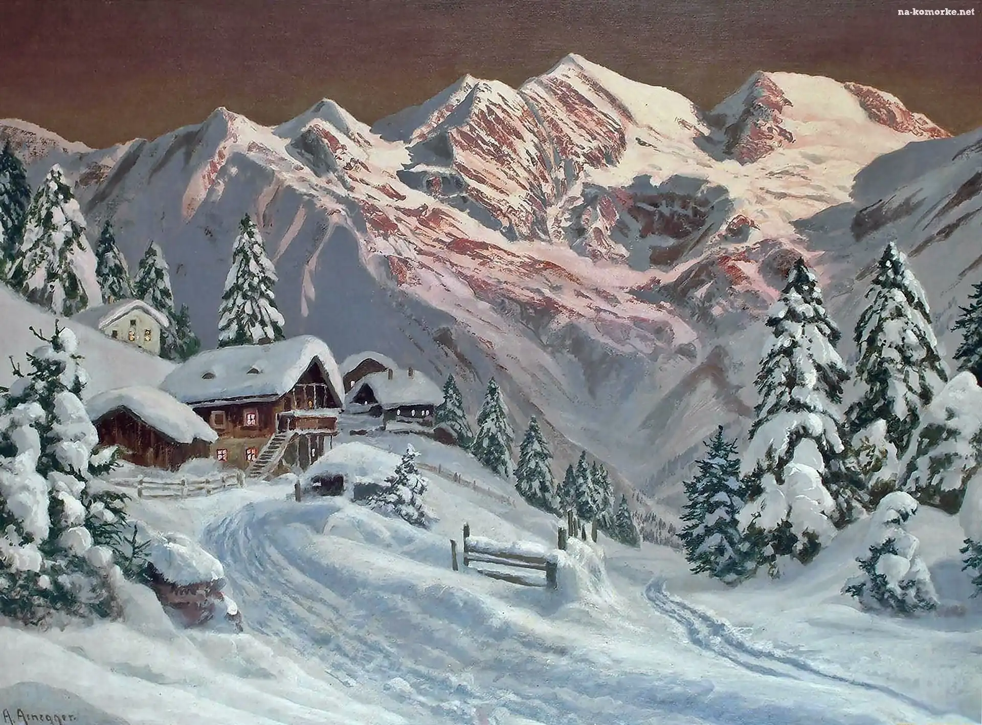 Góry, Arnegger, Alois, Świerki, Zima, Domy na Komórkę