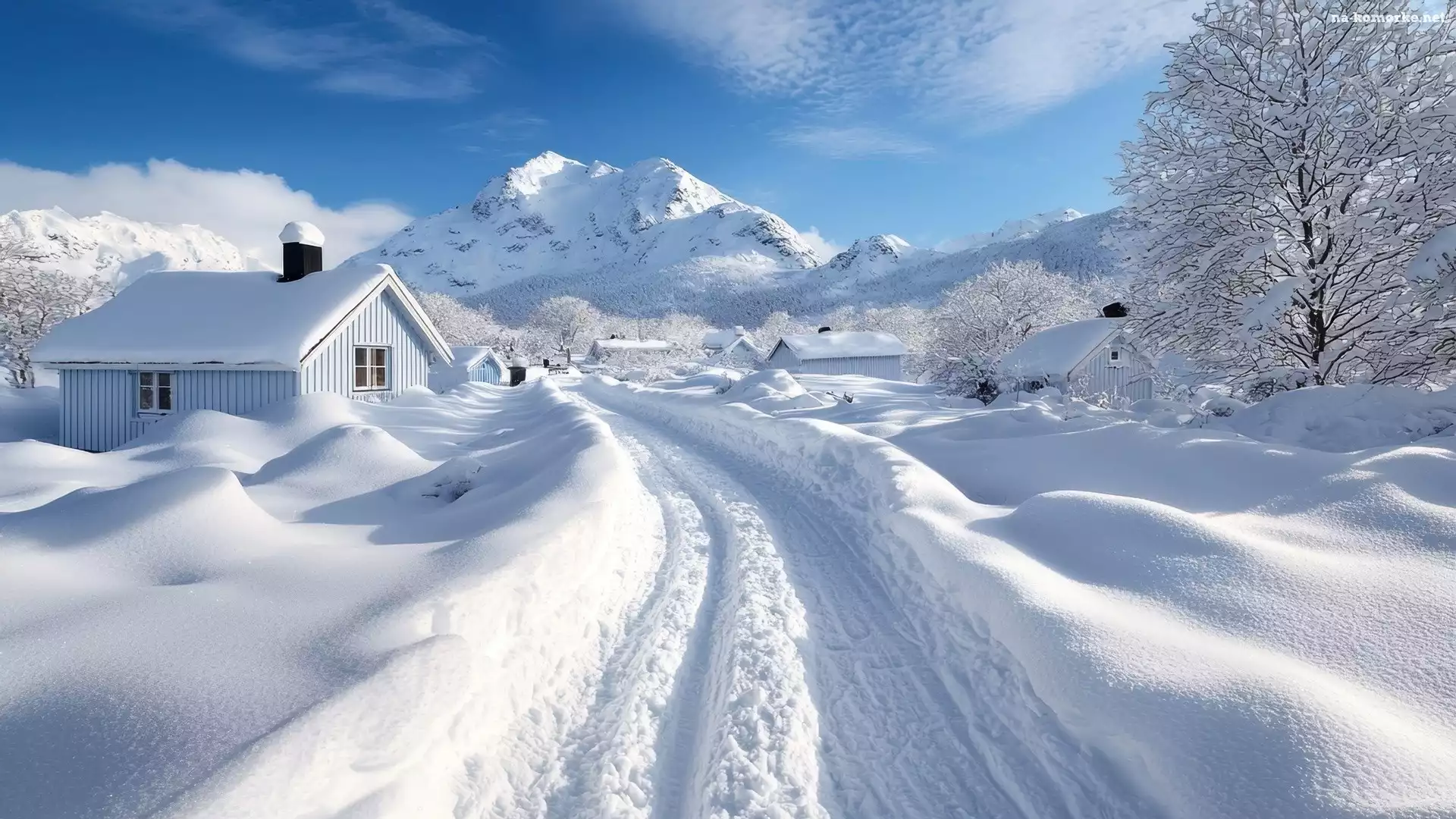 Zaśnieżona, Droga, Zima, Góry, Domy, Drzewa, Ośnieżone na Komórkę