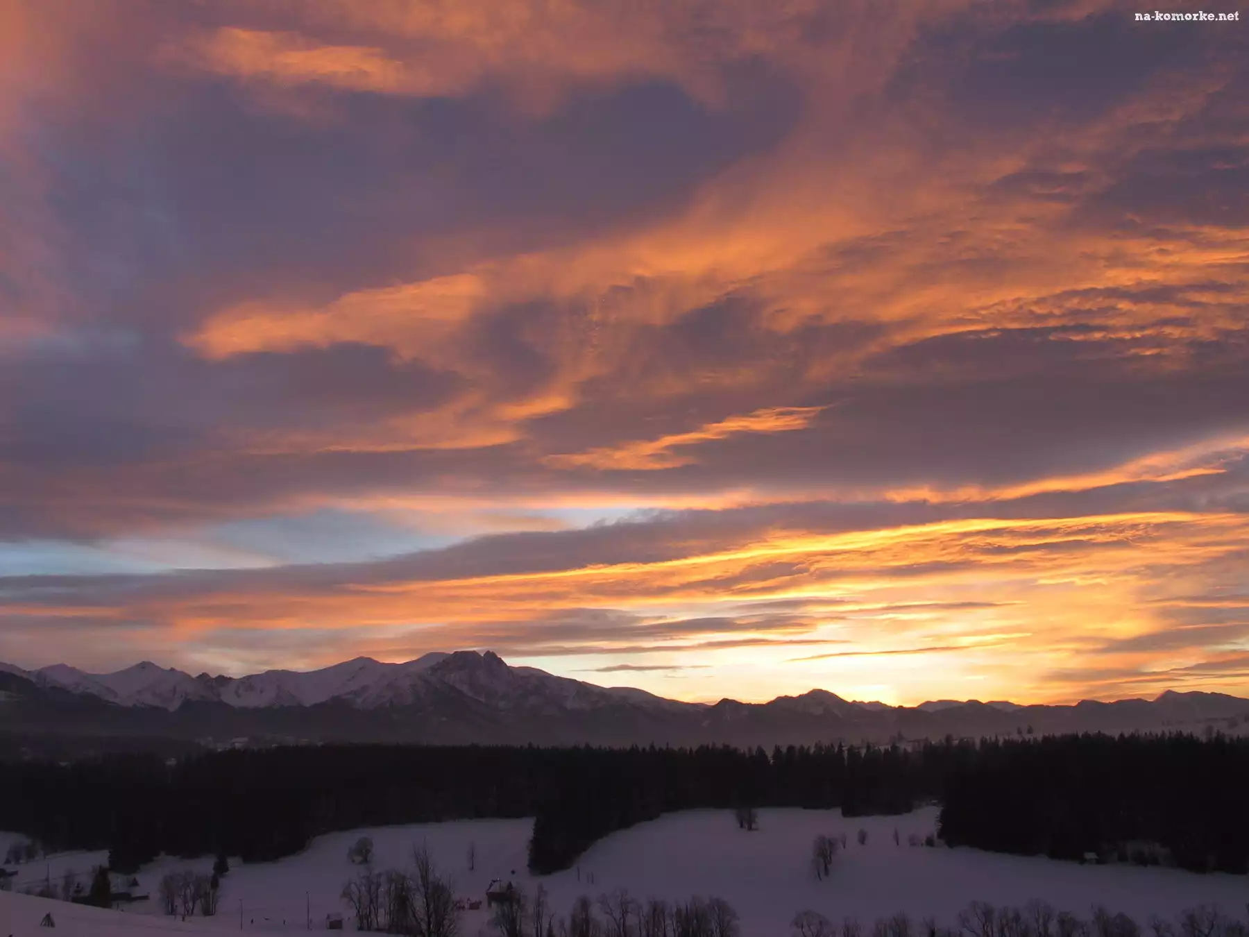 Góry, Zachód słońca, Zima, Niebo na Komórkę