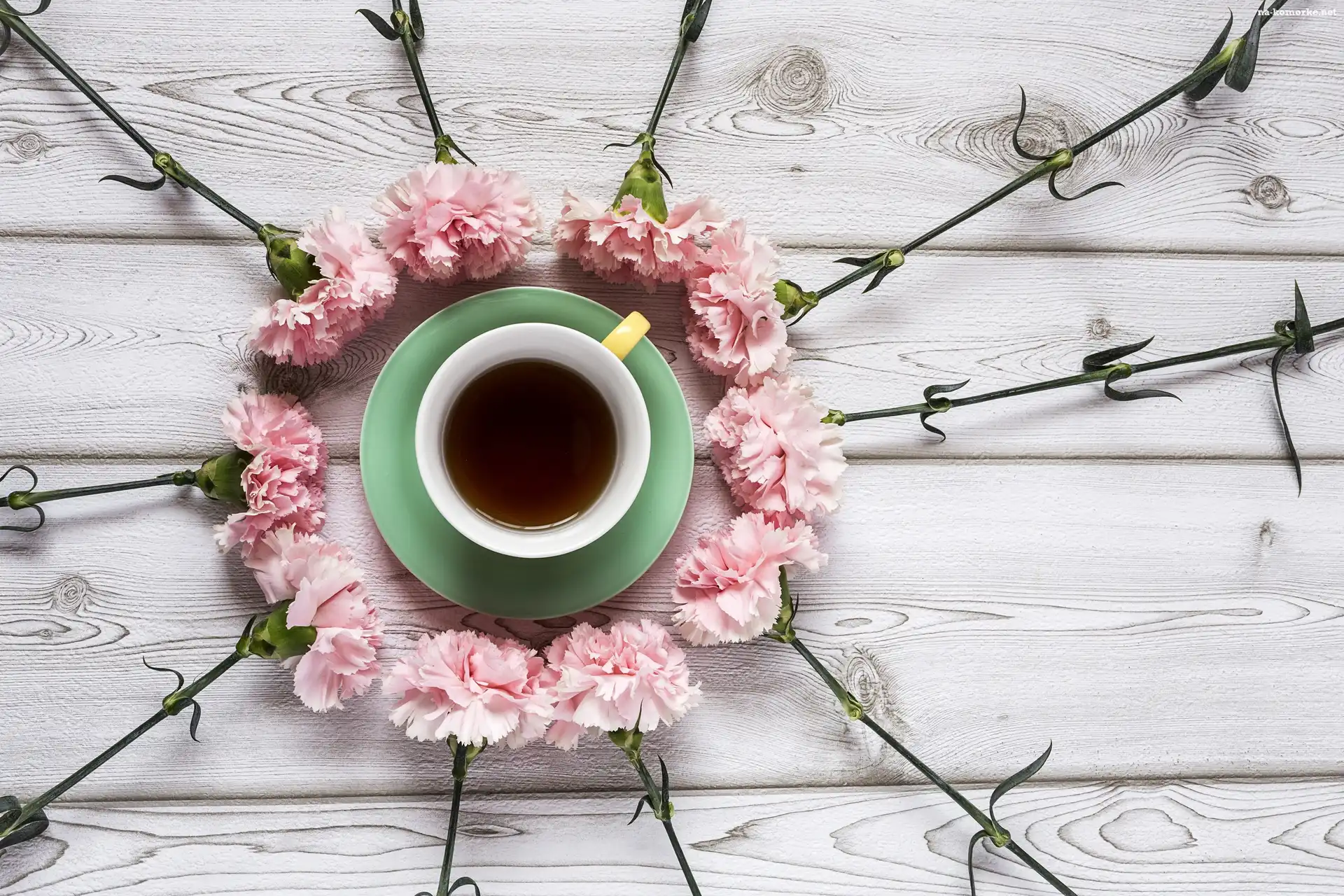 Goździki, Filiżanka, Herbata, Kwiaty, Różowe na Komórkę