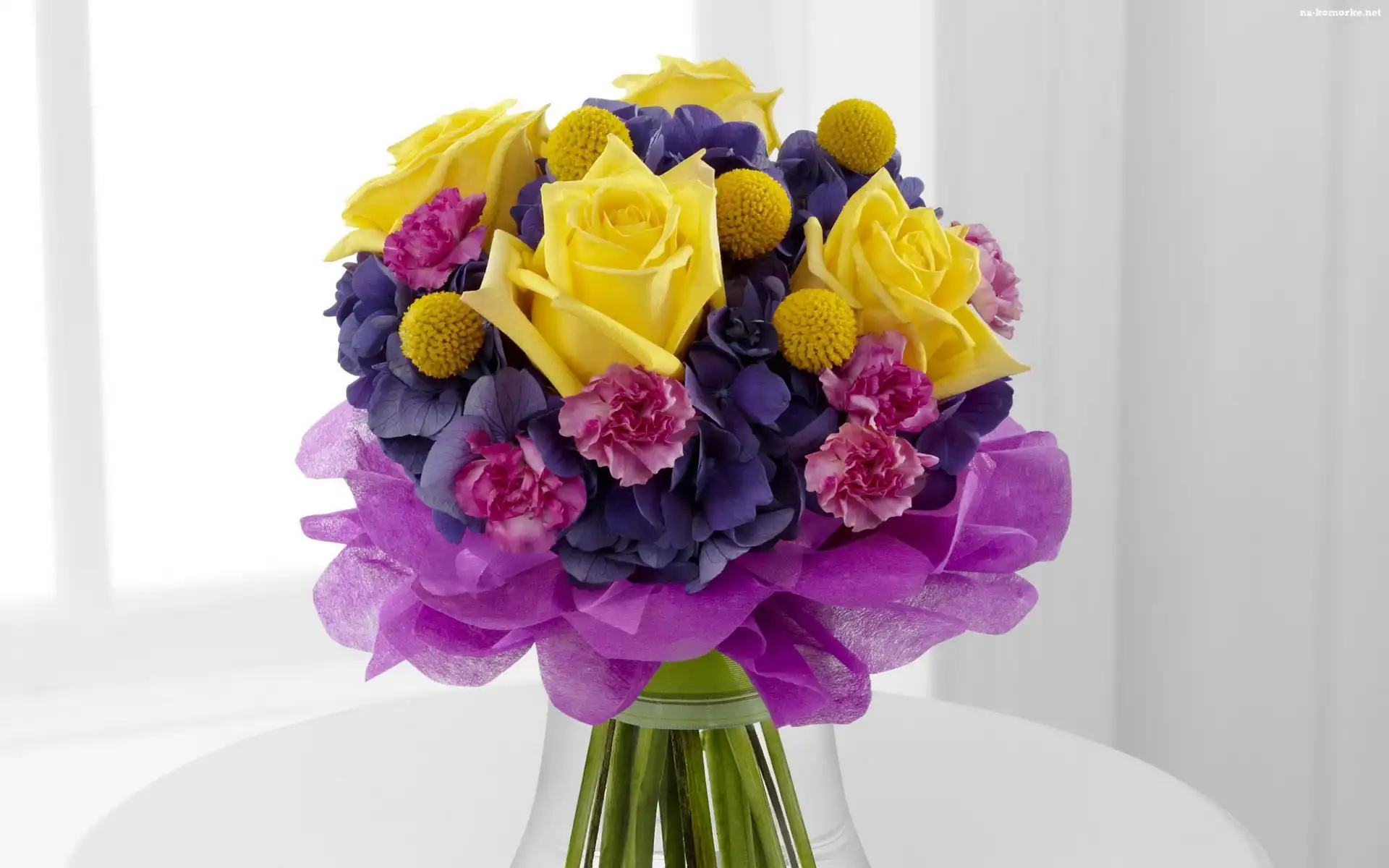 Goździki, Bukiet, Kwiatów, Żółte, Róże na Komórkę