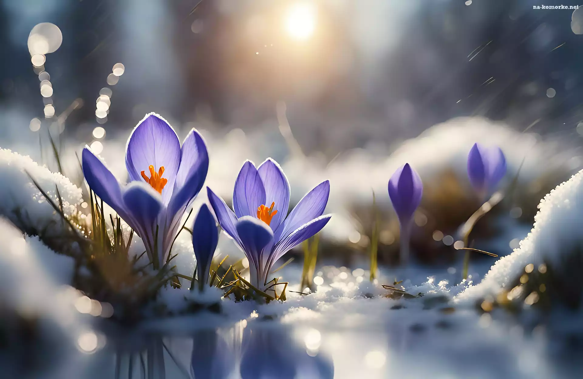 Kwiaty, Grafika 2D, Fioletowe, Krokusy na Komórkę
