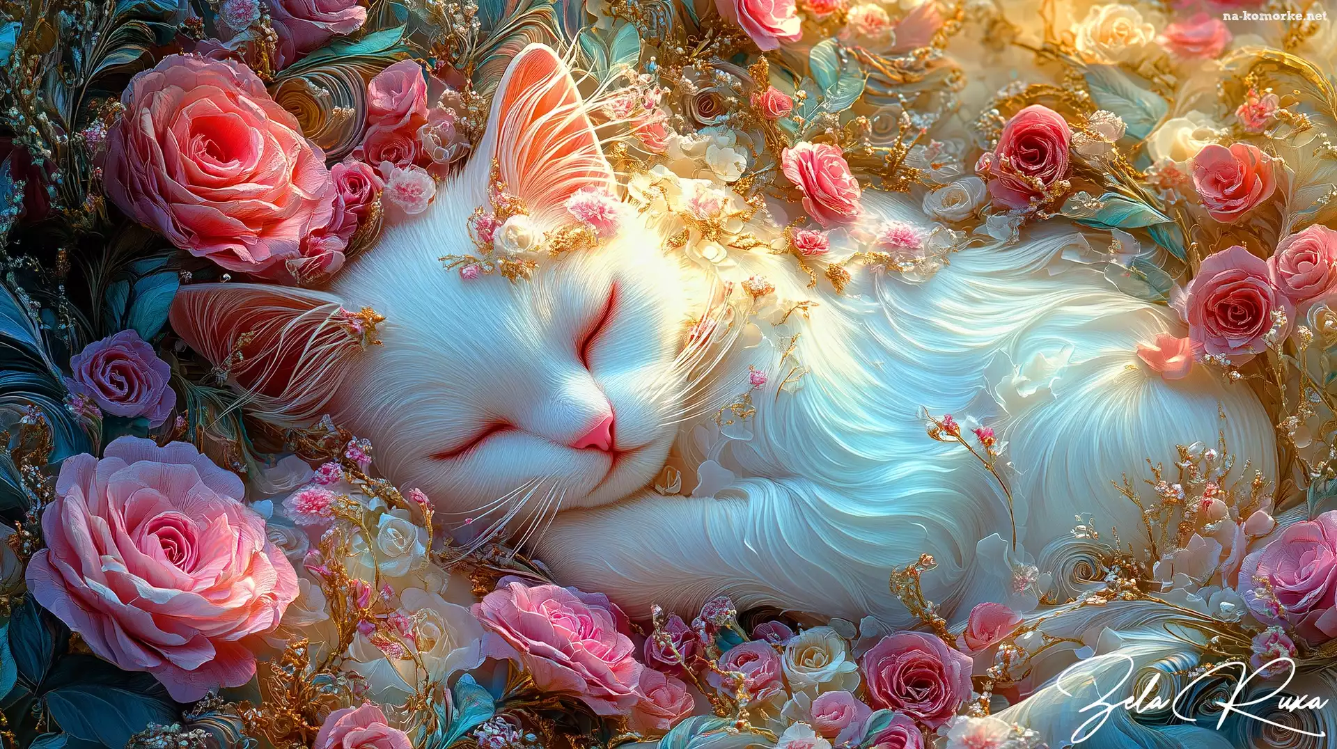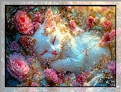 Róże, Grafika AI, Kot, Biały na Komórkę