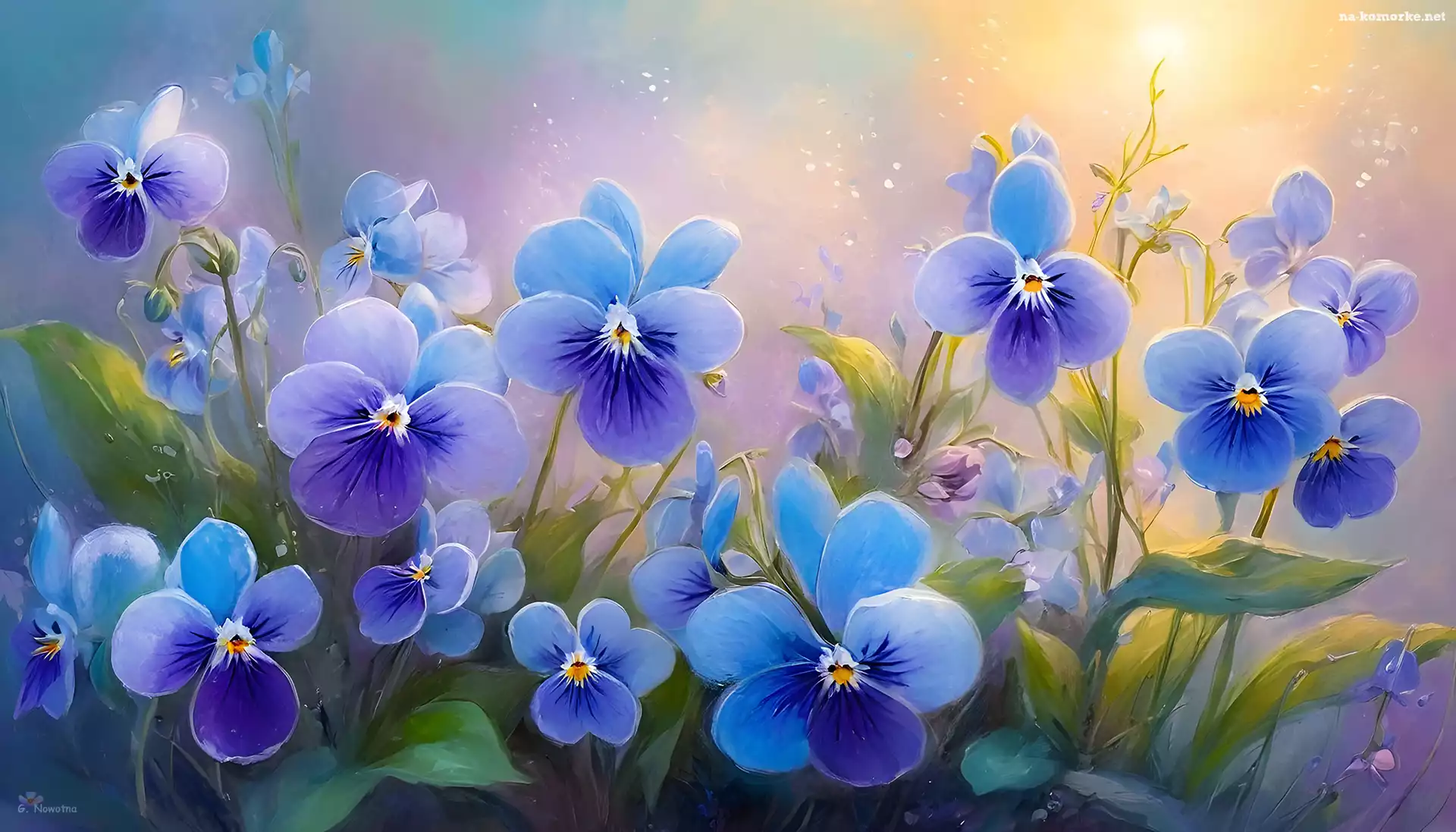 Kwiaty, Grafika AI, Niebieskie, Bratki na Komórkę