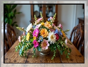Stół, Grafika AI, Kwiaty, Bukiet na Komórkę